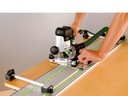 Szynę prowadzącą LR 32 można szybko ustawić równolegle do krawędzi za pomocą dwóch ograniczników bocznych, które są pozycjonowane przy użyciu zderzaka przesuwnego