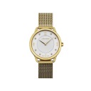 Pasek z siatki milanaise ze stali nierdzewnej z powłoką PVD w kolorze żółto-złotym zapewnia wygode noszenia zegarka.