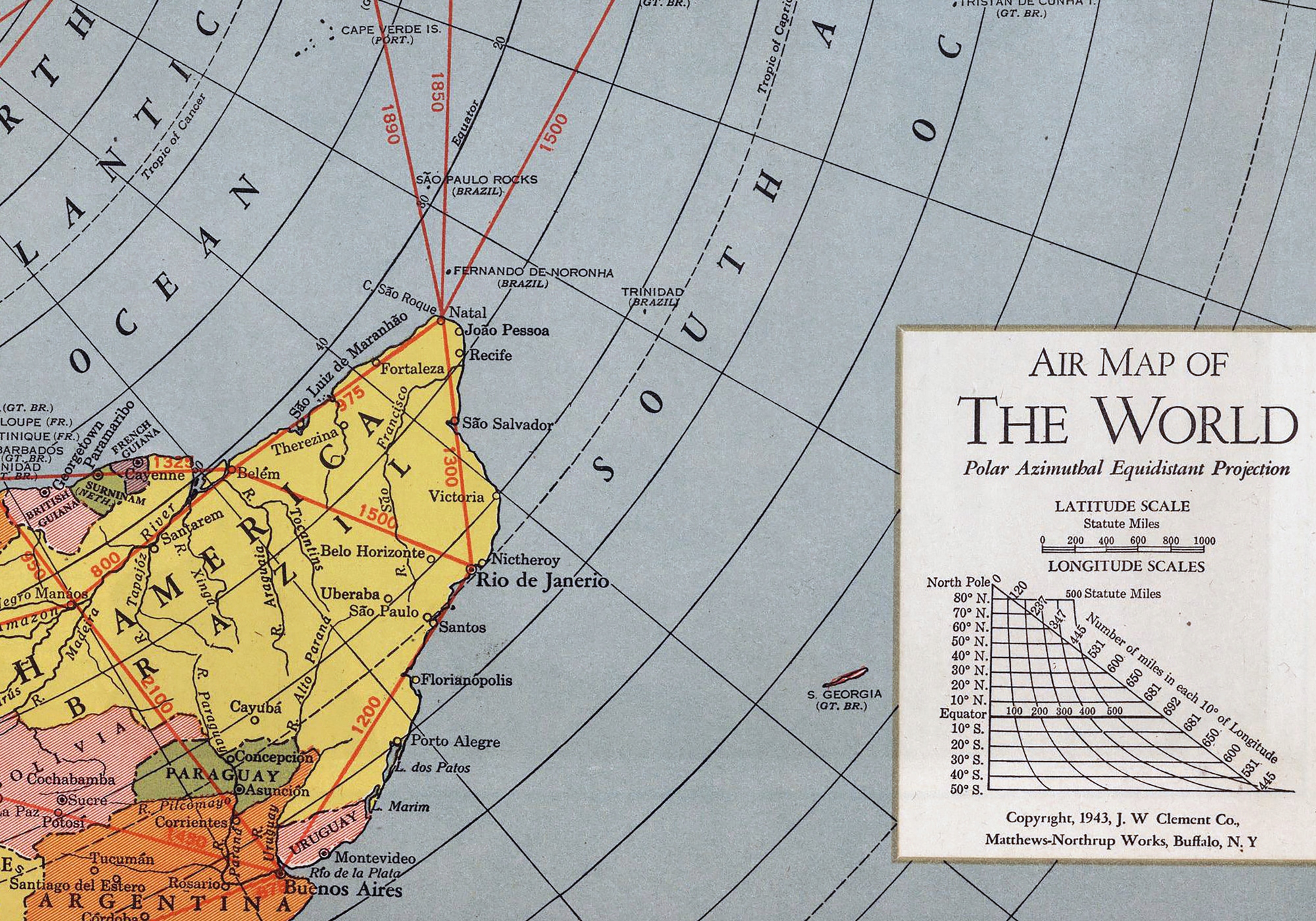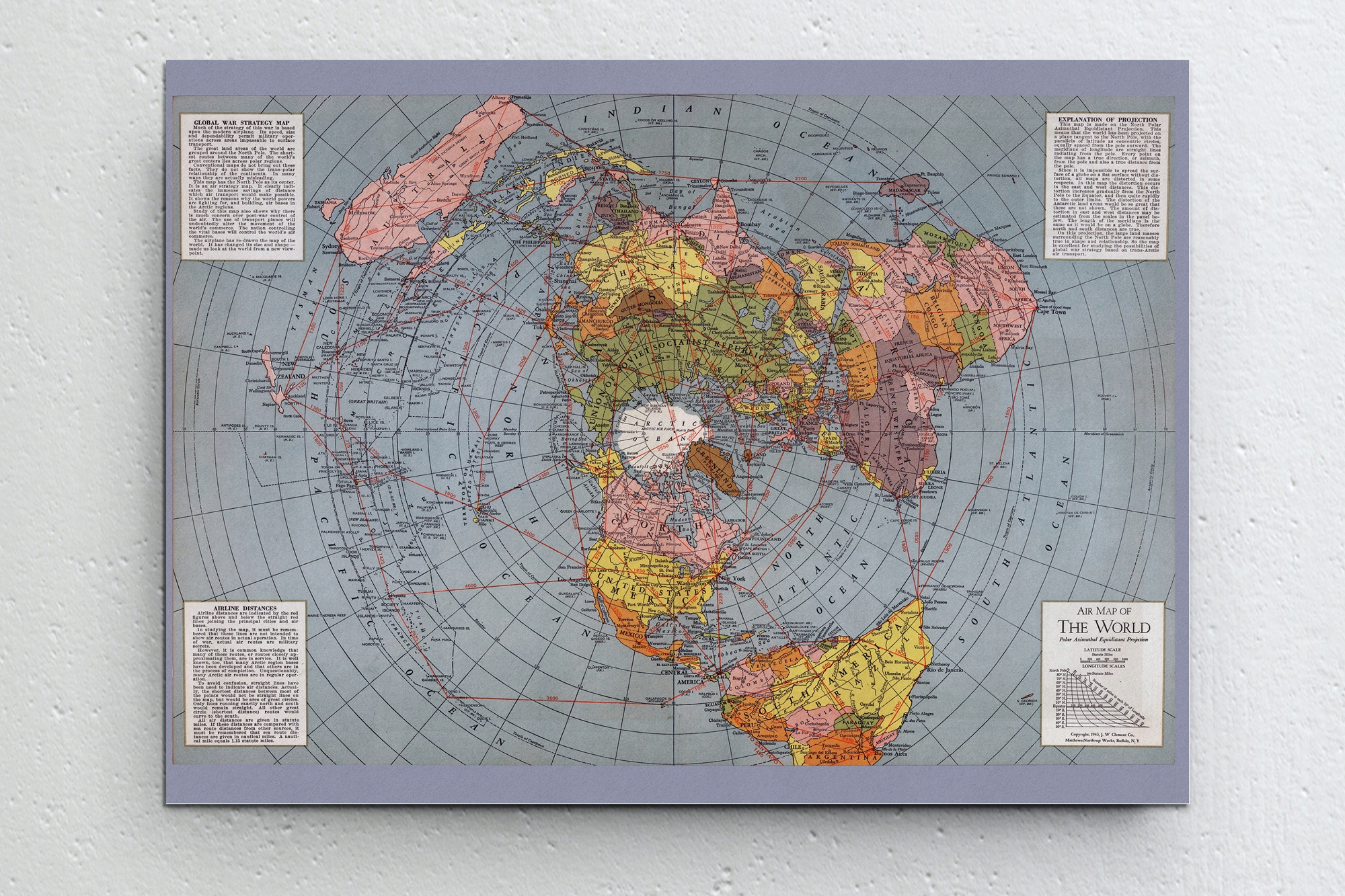 Reprodukcja mapy z roku 1943: Mapa płaskiej ziemi, AirMap Polar Azimuthal Equidistant Projection