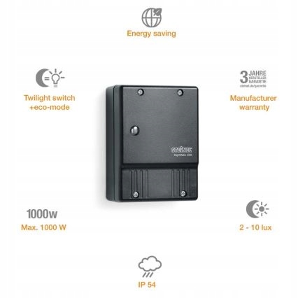 ✅Włącznik zmierzchowy NightMatic 2000 mierząc jasność otoczenia, automatycznie zapala podłączone lampy wieczorem po osiągnięciu ustawionego progu czułości zmierzchowej i wyłącza je o świcie.