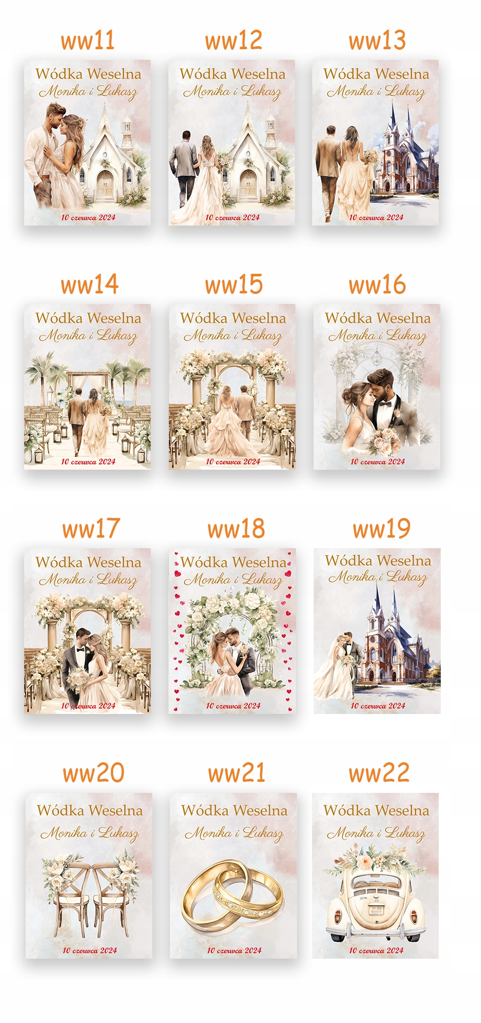 W wiadomości do sprzedającego prosimy podać symbol wzoru, datę ślubu oraz imiona Państwa Młodych.