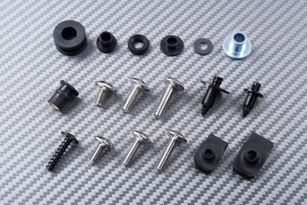 Ten zestaw sprzętowy składa się ze wszystkich śrub, nakrętek, podkładek i klipsów, które mogą być potrzebne do założenia owiewek. Kompletny i ponumerowany opis, zawierający listę wszystkich części podanych w tym zestawie i wskazujący, gdzie można ich używać na motocyklu, jest dostarczany dla Twojej wygody.
