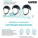 Kask rowerowy Uvex True CC świetnie sprawdzi się w różnych sytuacjach. Może być z powodzeniem wykorzystywany na wycieczkach w terenie. Dobrze poradzi sobie w lesie czy w górach. Jest także odpowiednim wyborem do codziennego poruszania się po mieście. Dzięki zastosowanym rozwiązaniom zapewnia duży komfort. Skorupa została wyprofilowana w taki sposób, aby osoby z włosami związanymi w kucyk lub zaplecionymi w warkocz miały zapewnioną odpowiednią wygodę. Wykonano ją w technologii Double Inmould, co oznacza, że składa się z dwóch, trwale połączonych ze sobą warstw. Pierwszą z nich jest twarda skorupa, z kolei drugą pianka EPS. Wewnętrzna jest dodatkowo zabezpieczona polikarbonową osłoną. Dobrze chronią głowę, rozpraszając energię uderzenia. Za wentylację odpowiedzialne są specjalne otwory umożliwiające optymalną cyrkulację powietrza. Zapobiega to przegrzewaniu i zwiększa komfort jazdy w upalne dni. Wloty we frontowej części zabezpieczono siatką przeciwko owadom. Do dyspozycji użytkownika jest też regulowany daszek, który w dowolnej chwili można zdjąć. Wewnątrz zastosowano miękką wyściółkę basic. Za optymalne dopasowanie do głowy odpowiadają technologie 3D IAS 3.0 fit oraz Monomatic. Za pomocą specjalnego pokrętła można szybko dostosować obwód kasku. Za pewne trzymanie się modelu na miejscu odpowiadają paski zapinane na solidne i wygodne zapięcie Monomatic. Dla osób, którym zależy na dodatkowym oświetleniu, istnieje możliwość dokupienia lampki, którą można zamontować w tylnej części produktu.