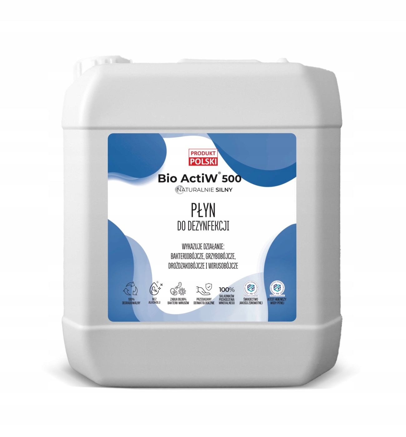 Bio ActiW 500, znany również jako „woda elektrochemicznie aktywowana ECA”, to zaawansowany koncentrat do dezynfekcji o wyjątkowo wysokim REDOX ORP (980-1050 mV), który działa szybko i skutecznie na wszelkie wirusy, bakterie, zarodniki, pleśnie, grzyby, glony i inne patogeny. Substancją czynną jest kwas podchlorawy (HOCl).