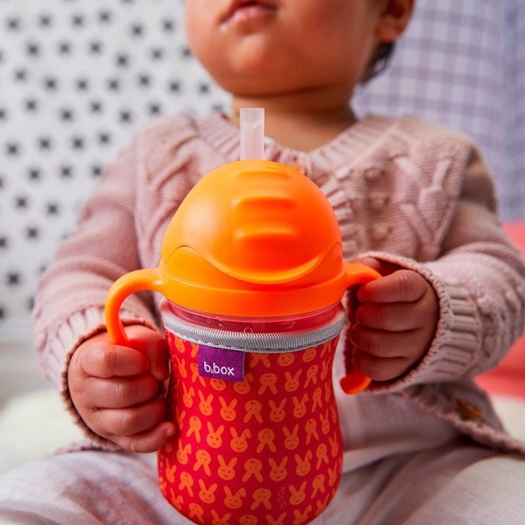 Przeznaczony na chłodną wodę i soczki owocowe. Uchwyty stworzone z myślą o rozmiarze małych rączek. Słomka porusza się pod każdym kątem nachylenia. Szczelne zamknięcie ogranicza ryzyka rozlania się napoju. Lekka i praktyczna konstrukcja. Można myć w zmywarce. Nie zawiera BPA. Bidon ze słomką b.box to gadżet, który ułatwia naukę samodzielnego picia wody i innych napojów. Mogą używać go niemowlęta, które potrafią siedzieć i starsze dzieci. Praktyczna konstrukcja ogranicza ryzyko zakrztuszenia się w czasie picia, a także rozlewania wody podczas podnoszenia bidonu do góry. Dzięki specjalnemu zamykaniu maluch może podnosić bidon do góry dnem i przez cały czas pić. Inne bidony nie pozwalają na takie użycie, dlatego są mało praktyczne dla najmłodszych dzieci. Drogeria internetowa poleca bidon dla niemowląt karmionych piersią, gdyż picie przez słomkę nie zaburza odruchu ssania. Bidon w atrakcyjnej cenie może być używany w domu lub podczas spacerów. Sprawdza się dobrze także w czasie podróży. Po powrocie do domu można umyć go w zmywarce i wysterylizować w razie potrzeby. Miękka słomka z silikonu ogranicza ryzyko skaleczeń, gdyż jest bezpieczna dla podniebienia maluszków.