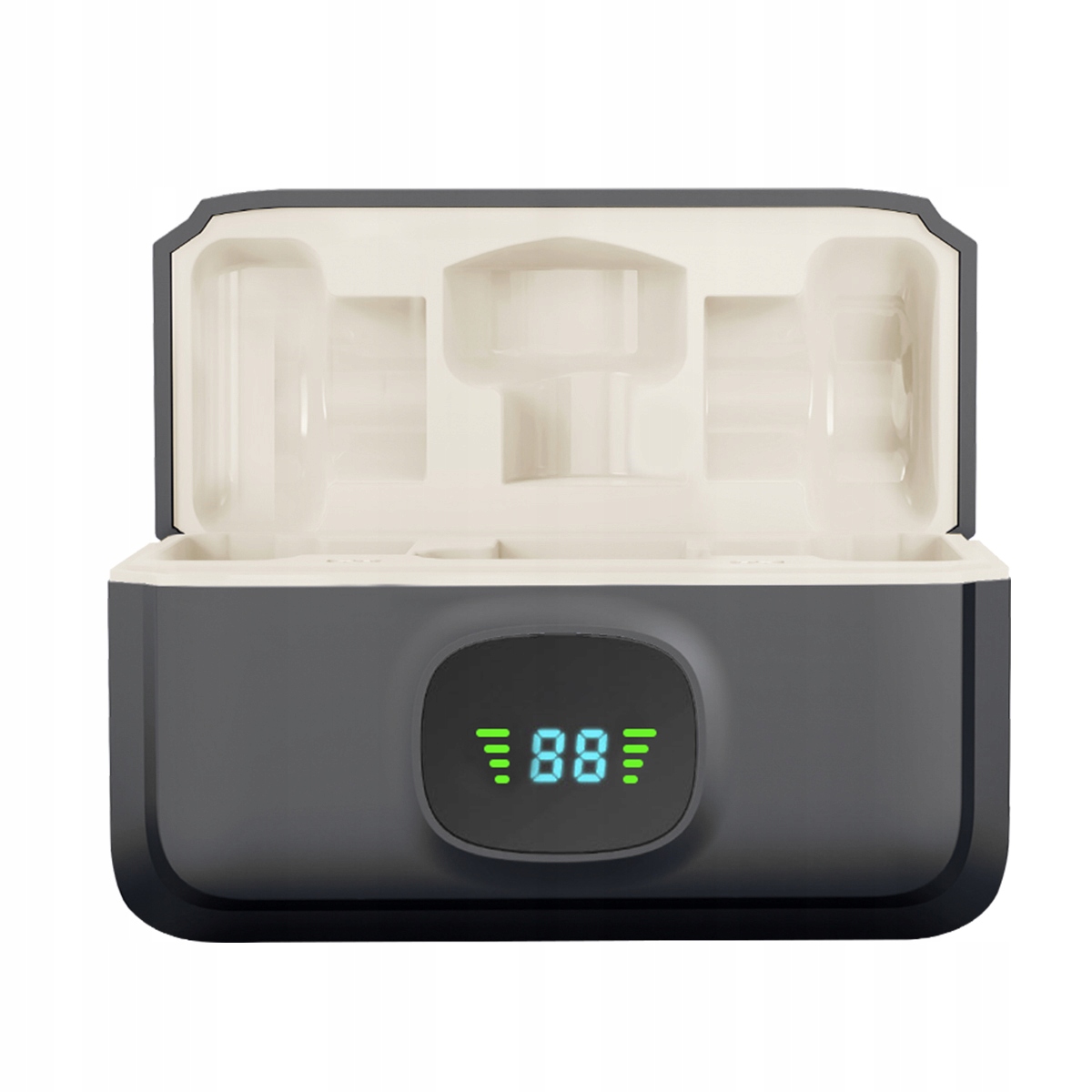 Lekka ładowarka wbudowana w case umożliwia ładowanie mikrofonu w dowolnym momencie. Etui wyposażone w wskaźnik poziomu naładowania powerbanka oraz mikrofonów Do 6 godzin stabilnego nagrywania po pełnym naładowaniu.