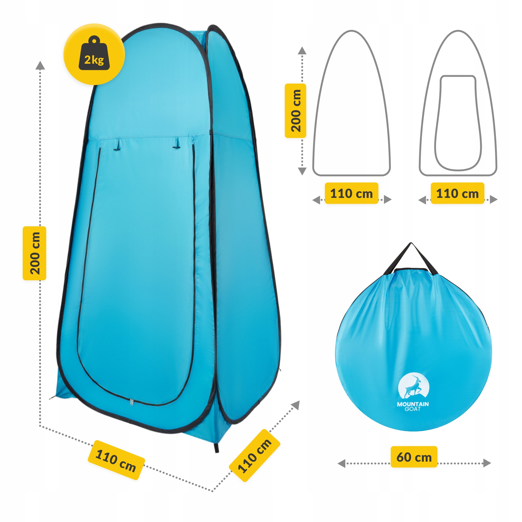 ✅ Namiot przebieralnia turystyczna MOUNTAIN GOAT typu POP-UP wyróżnia się samorozkładającą konstrukcją. Wystarczy wyjąć go z pokrowca i przymocować do ziemi.