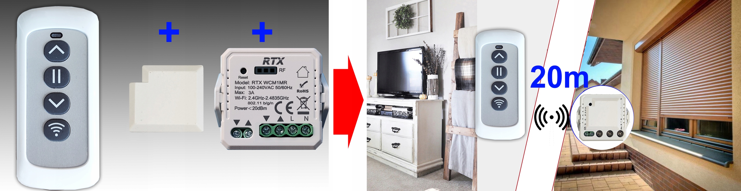 Dzięki takiemu rozwiązaniu możliwe jest wykorzystanie przycisku RF zainstalowanego w dowolnym miejscu i sterowanie lokalne bezprzewodowe nawet do 20metrów.