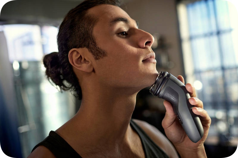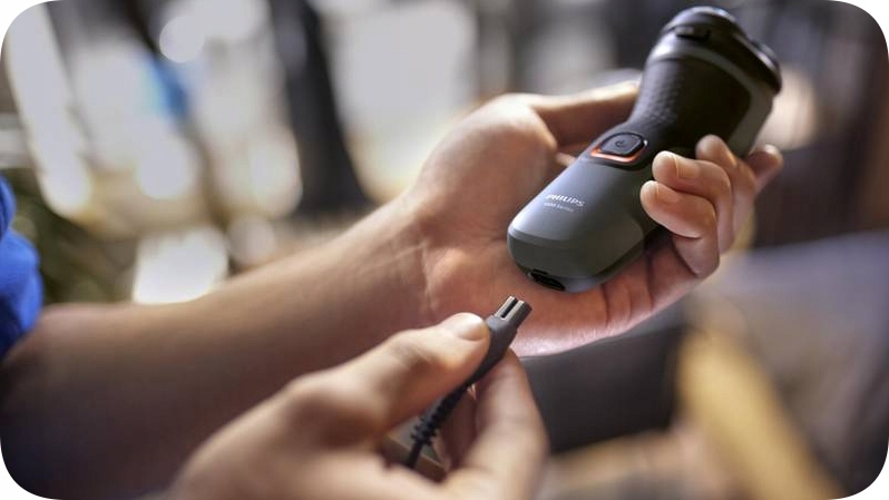 Wygodna obsługa golarki dzięki ergonomicznej konstrukcji, która pomaga zachować pewny chwyt podczas golenia.
