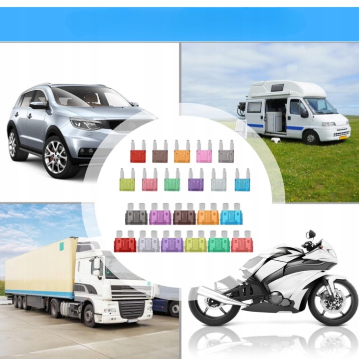 Bezpieczniki nadają się do samochodów , kamperów , tirów i motocykli .