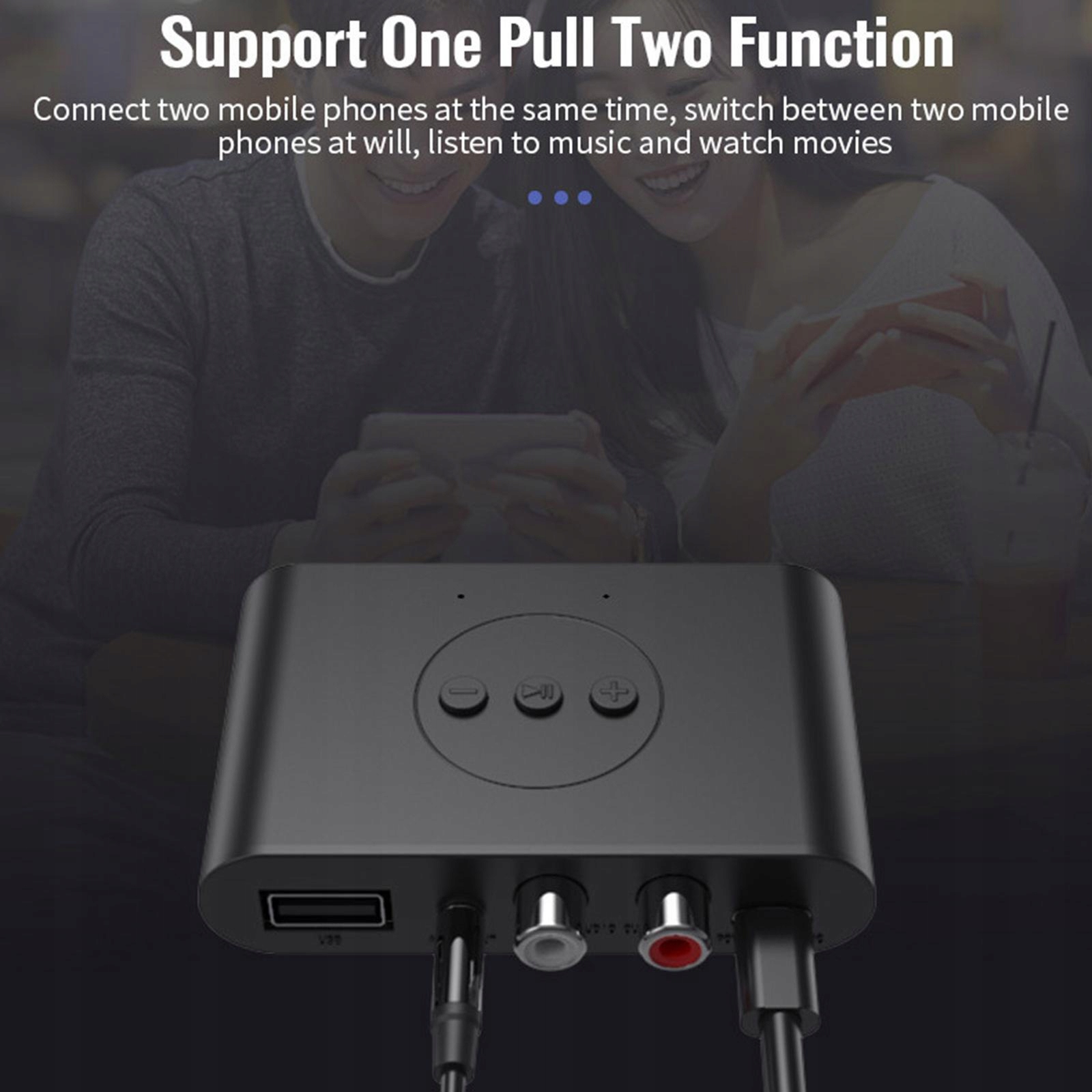 Urządzenie: Port AUX 3,5 mm i 2 porty RCA umożliwiają jednoczesne łączenie się z nimi w celu podłączenia do systemów audio innych niż samochodowe, domowego zestawu stereo, przewodowych słuchawek, głośników, wzmacniaczy i kina domowego. Podłącz dwa urządzenia jednocześnie, aby słuchać muzyki, wykonywać połączenia telefoniczne i nie tylko.