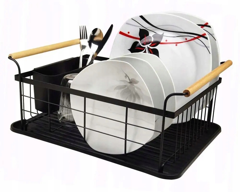 Metalowa czarna suszarka pasuje do każdej kuchni.