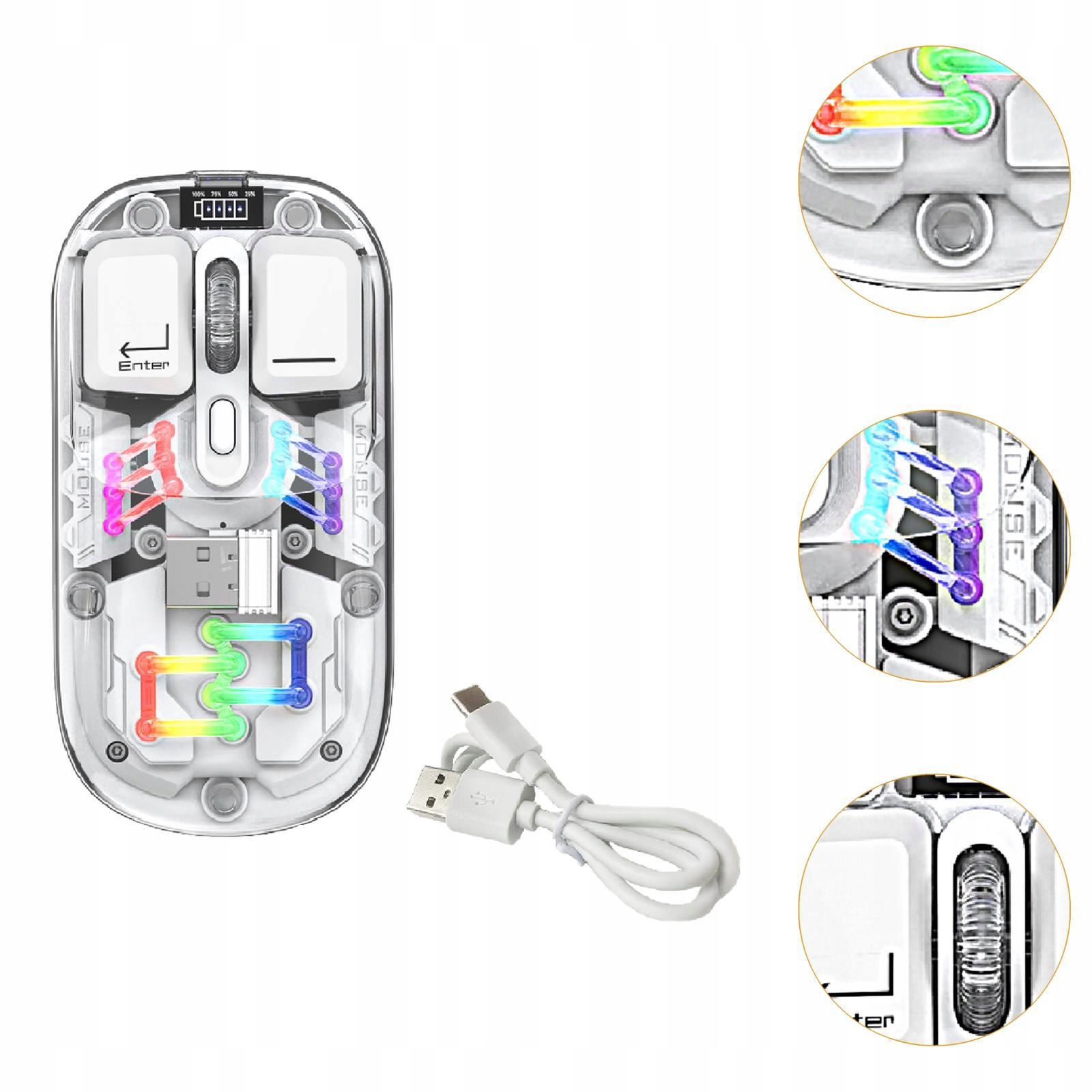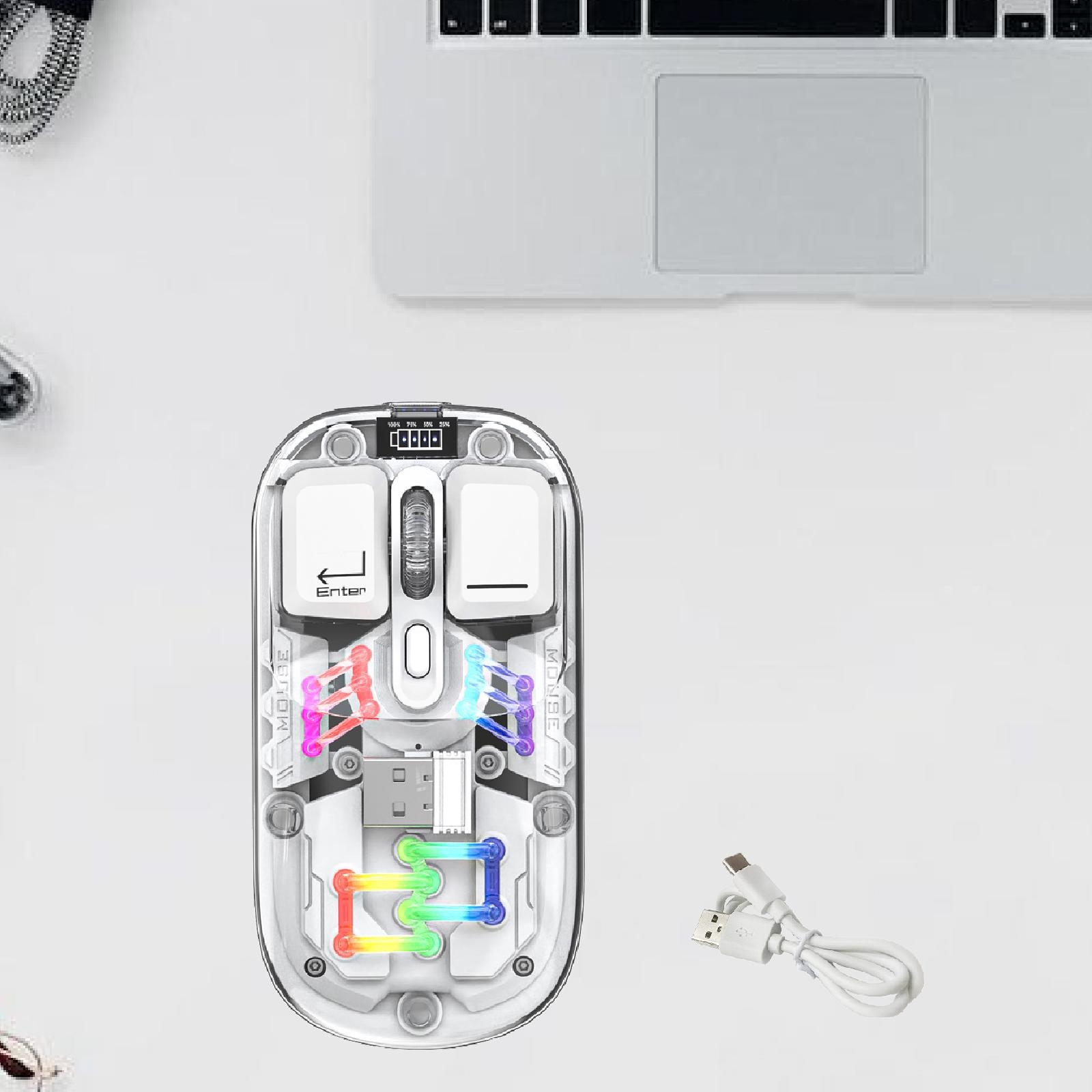 Mysz bezprzewodowa LED Lekki odbiornik USB Ergonomiczne myszy Przezroczysta mysz Biała