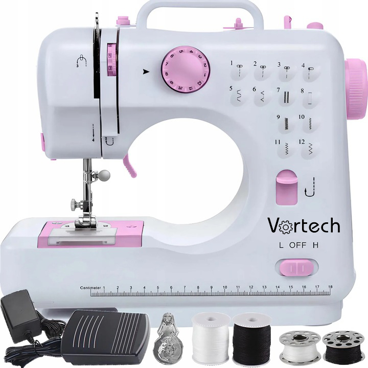 Niewielkie rozmiary nie oznaczają ograniczeń. Nasza Mini Maszyna do Szycia posiada aż 12 różnych ściegów, które pozwolą Ci na realizację różnorodnych projektów. Poznaj jej główne cechy:
