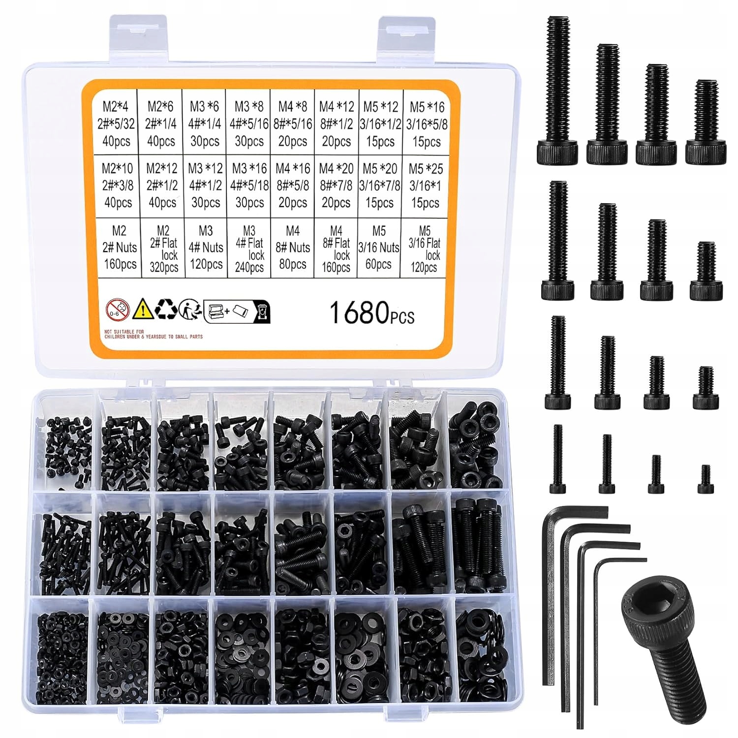 Ten imponujący zestaw zawiera aż 1680 sztuk różnych śrub imbusowych i nakładek, zapewniając Ci pełną gamę rozmiarów i możliwości. Nie musisz już martwić się o brakujące elementy - nasz zestaw zawiera wszystko, czego potrzebujesz, aby zakończyć swoje projekty z powodzeniem.