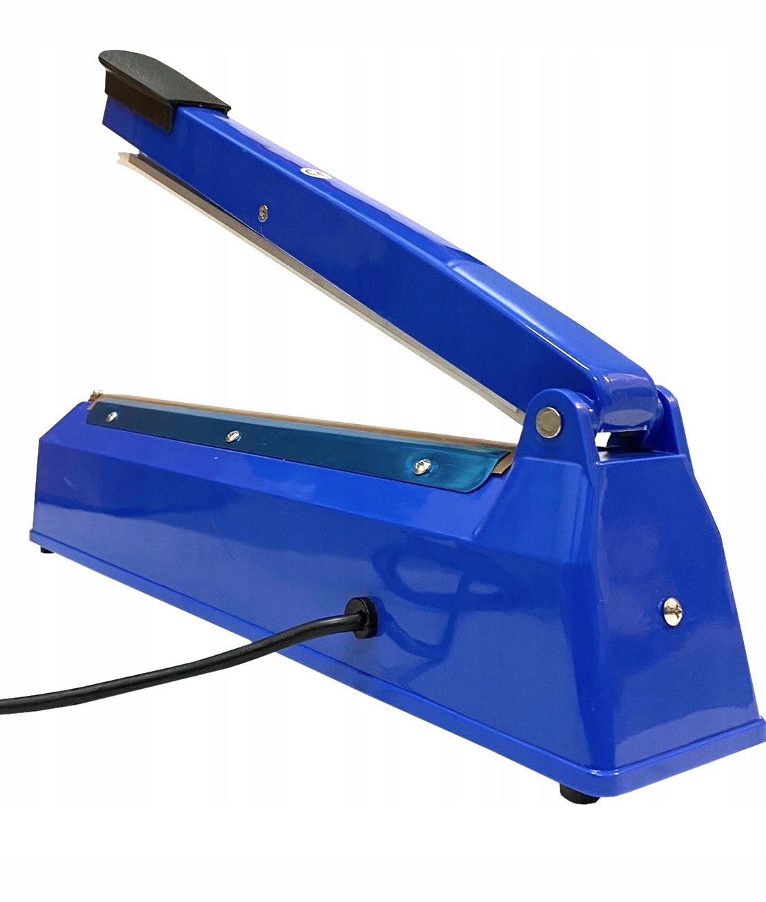 Ręczna zgrzewarka impulsowa do zamykania worków oraz różnego rodzaju folii w szczególności do LDPE, PET, PE itp. Na panelu sterowniczym ustawiamy długość czasu zgrzewu w zależności od grubości worka. Po załadowaniu worka, operator musi tylko wsunąć otwarty koniec pomiędzy szczęki i docisnąć ręcznie ramię zgrzewarki.