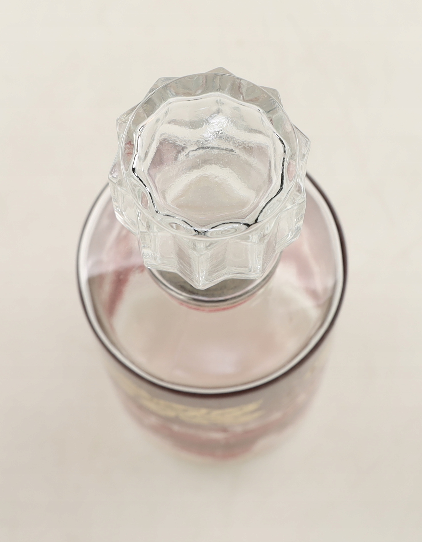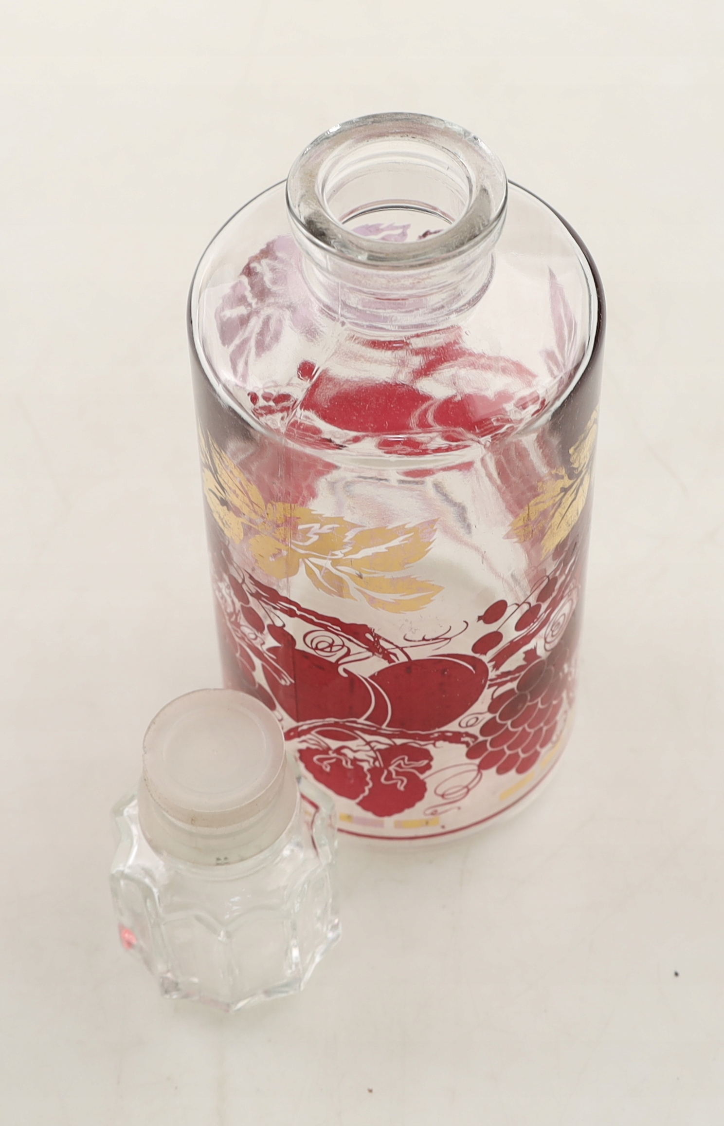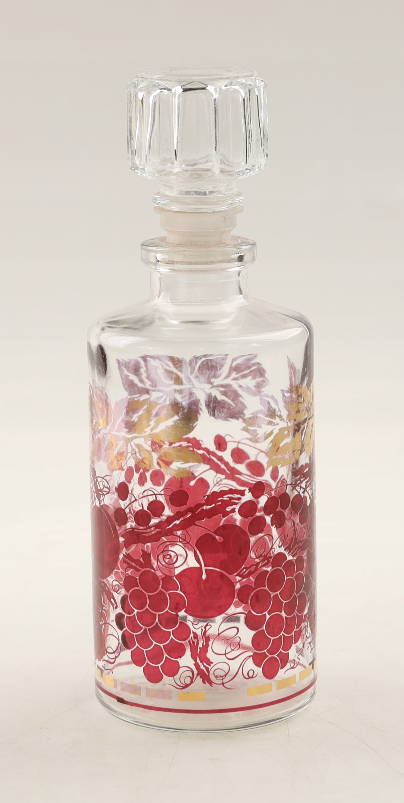 Szklana karafka, pochodząca z Francji, udekorowana motywem winorośli i złotymi akcentami. Ślady użytkowania. Sygnowana. Polecam
