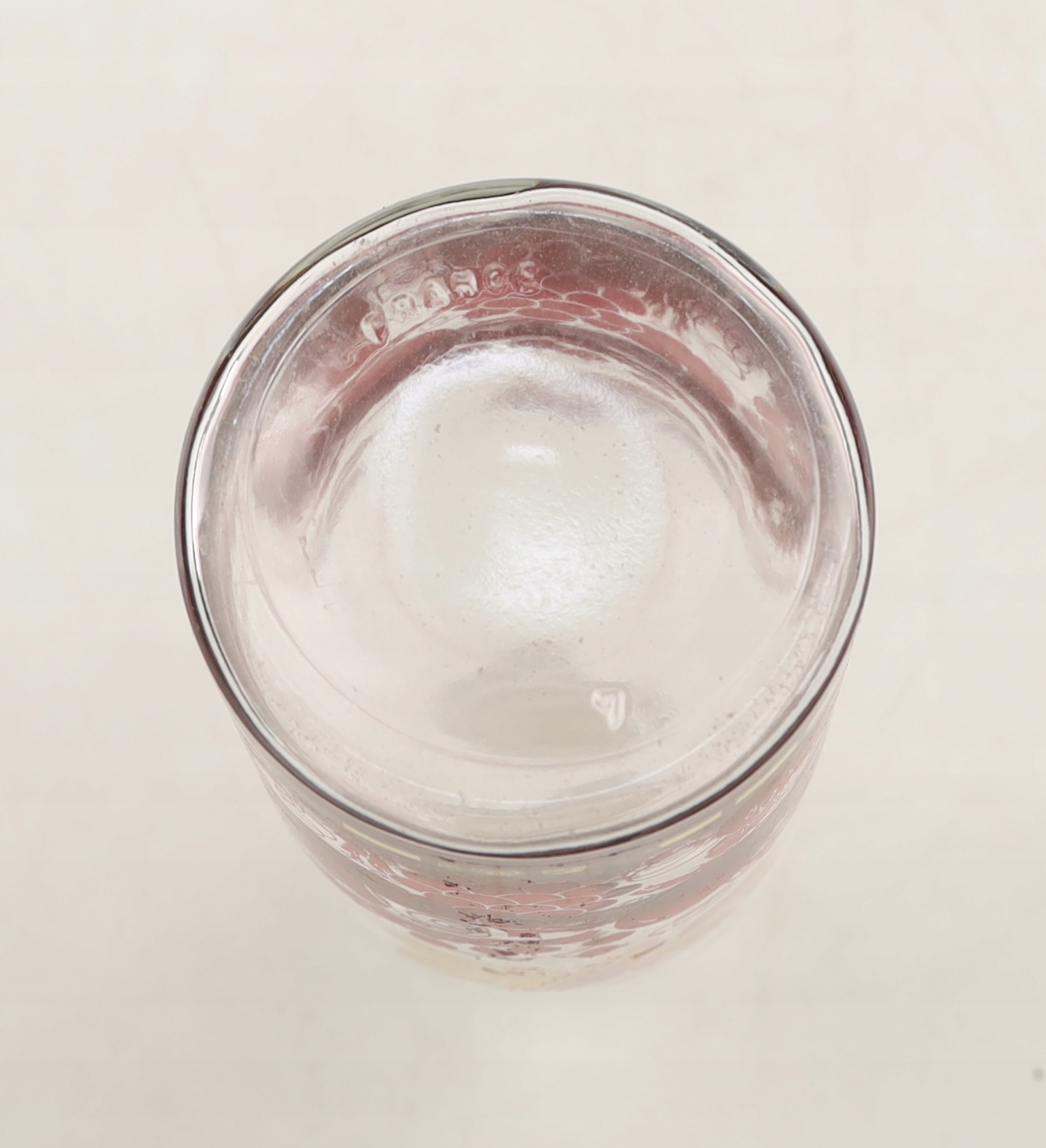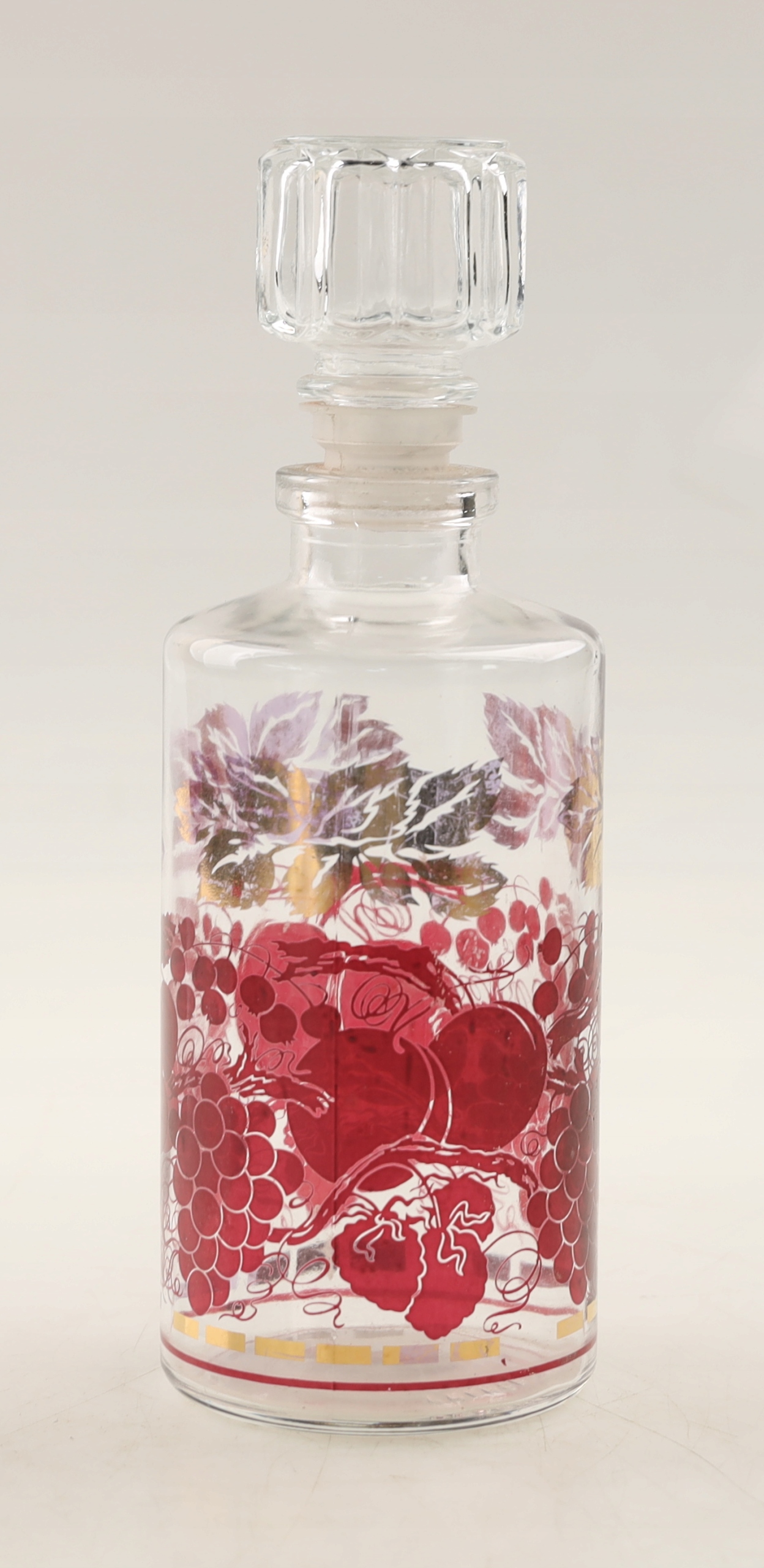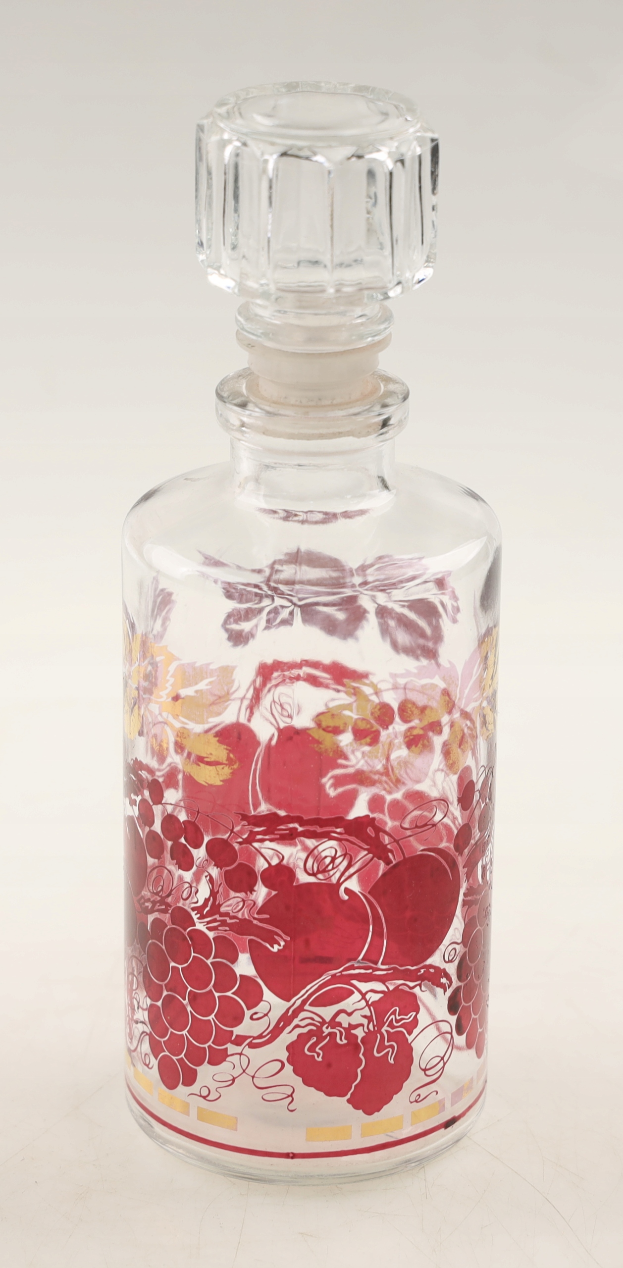 Szklana karafka, pochodząca z Francji, udekorowana motywem winorośli i złotymi akcentami. Ślady użytkowania. Sygnowana. Polecam