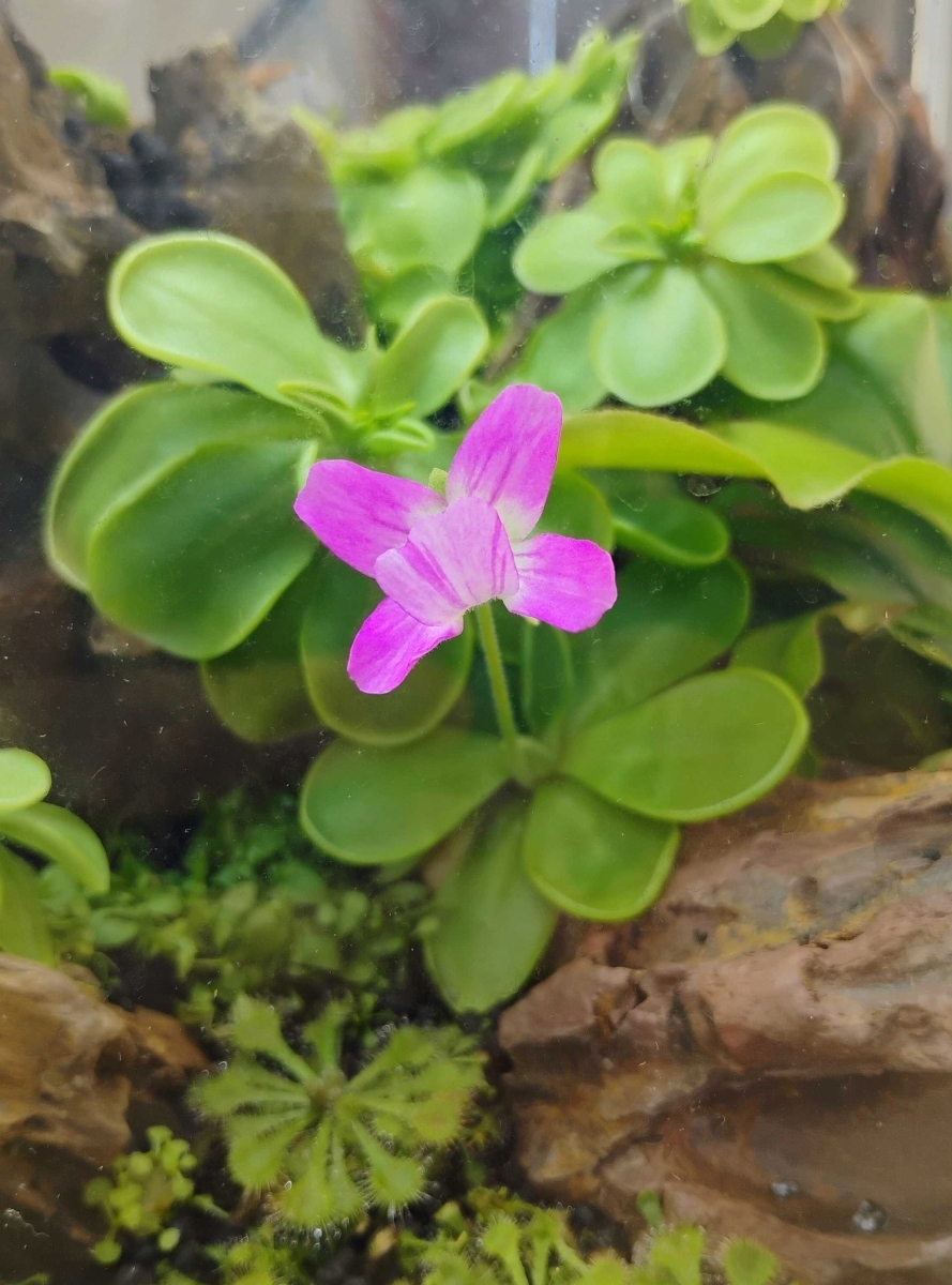 Utricularia longifolia zwana pływaczem długolistnym to mięsożerna bylina z rodziny pęcherzowatych. Ten pięknie kwitnący na fioletowo epifit pochodzi z Brazylii. Posiada pułapki ssące, zwane utricles. Wyrasta na wysokość 30 cm, co trzeba brać pod uwagę przy wyborze terrarium. Ciemnozielone liście pięknie kontrastują z fioletowymi kwiatami o delikatnym białym żyłkowaniu.