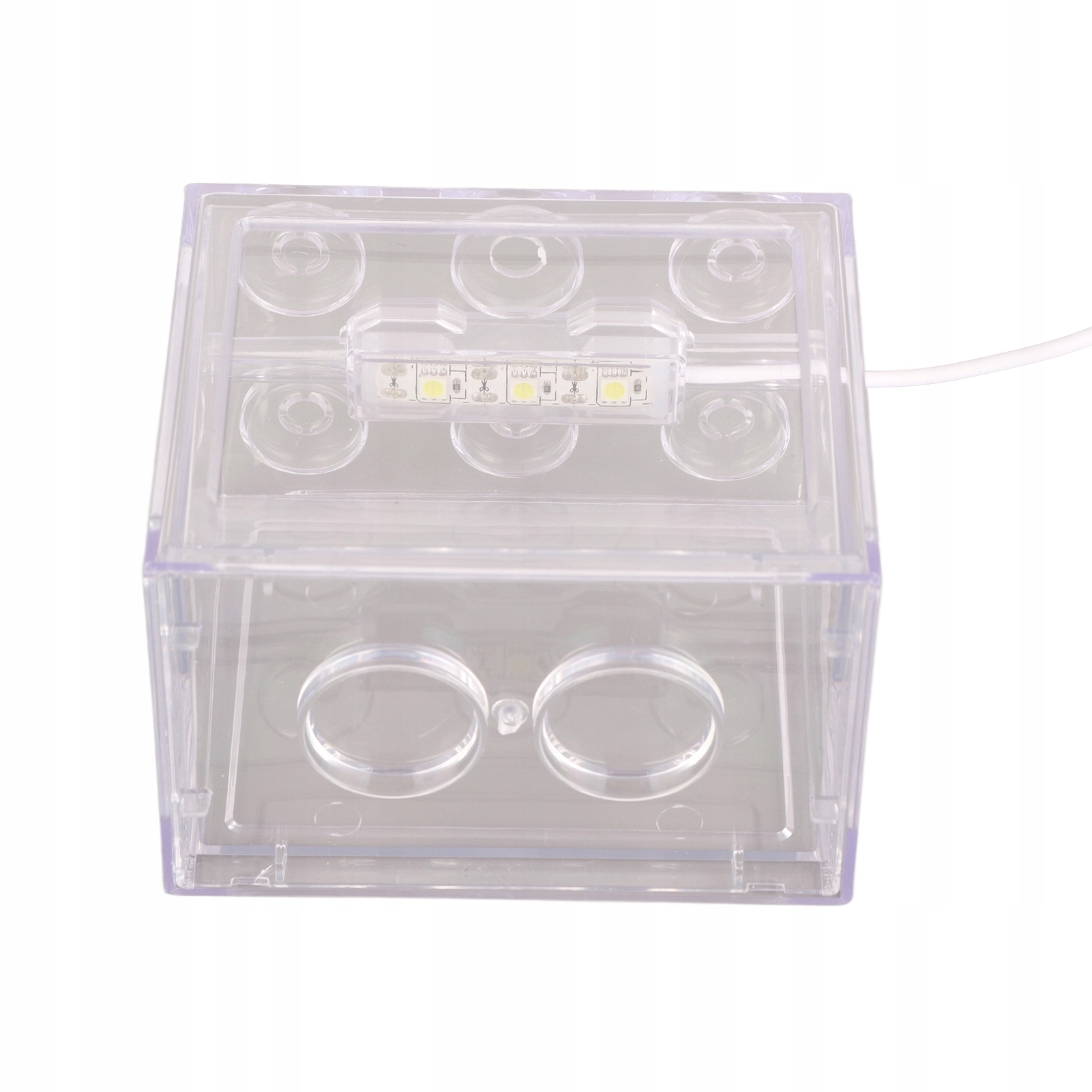Ten zbiornik na ryby jest wykonany z wysokiej jakości tworzywa sztucznego, dobrej wytrzymałości i trwałości. Zawiera diodę LED, ekologiczną, jasną i ma długą żywotność. Idealny do połowu małych ryb, takich jak bojownik syjamski i złote rybki. Unikalna konstrukcja klocków, którą można układać w stosy z wieloma akwariami.