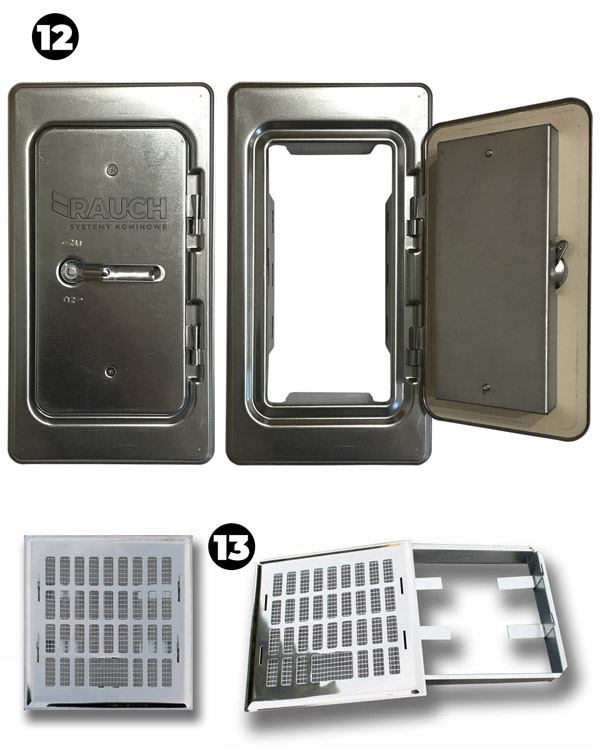 Wysokiej jakości izolowane wełną (12) DRZWICZKI KOMINOWE , niemieckiego producenta, gwarantują bezpieczeństwo oraz szczelność przewodu kominowego.