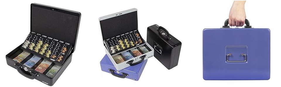 ➡️ Kasetka na pieniądze HMF o długości 30 cm to idealne rozwiązanie do przechowywania i transportu gotówki. Wyposażona w piankową wkładkę i dwóch uchwytów do noszenia, zapewnia bezpieczne przenoszenie. Wyjmowana tacka na monety jest skośna, co zapobiega przewracaniu się monet, i może być używana osobno. Dzięki wkładce piankowej w pokrywie, monety pozostają na swoim miejscu podczas transportu.