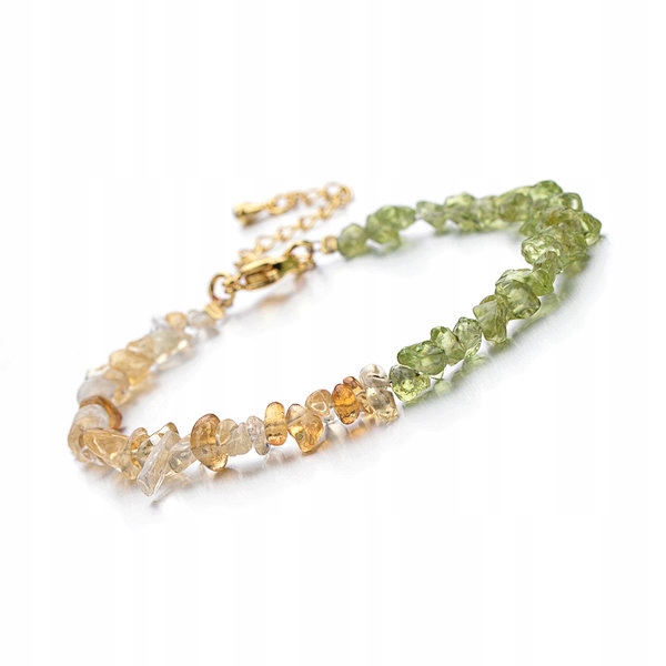 Bransoletka jest wykonana z naturalnego Cytrynu oraz Oliwinu. Obwód bransoletki można regulować, od 17 cm do 23cm. Kamienie są pochodzenia naturalnego co sprawia iż każda bransoletka jest niepowtarzalna i może nieznacznie różnić się kolorem lub odcieniem od tej przedstawionej na zdjęciu.