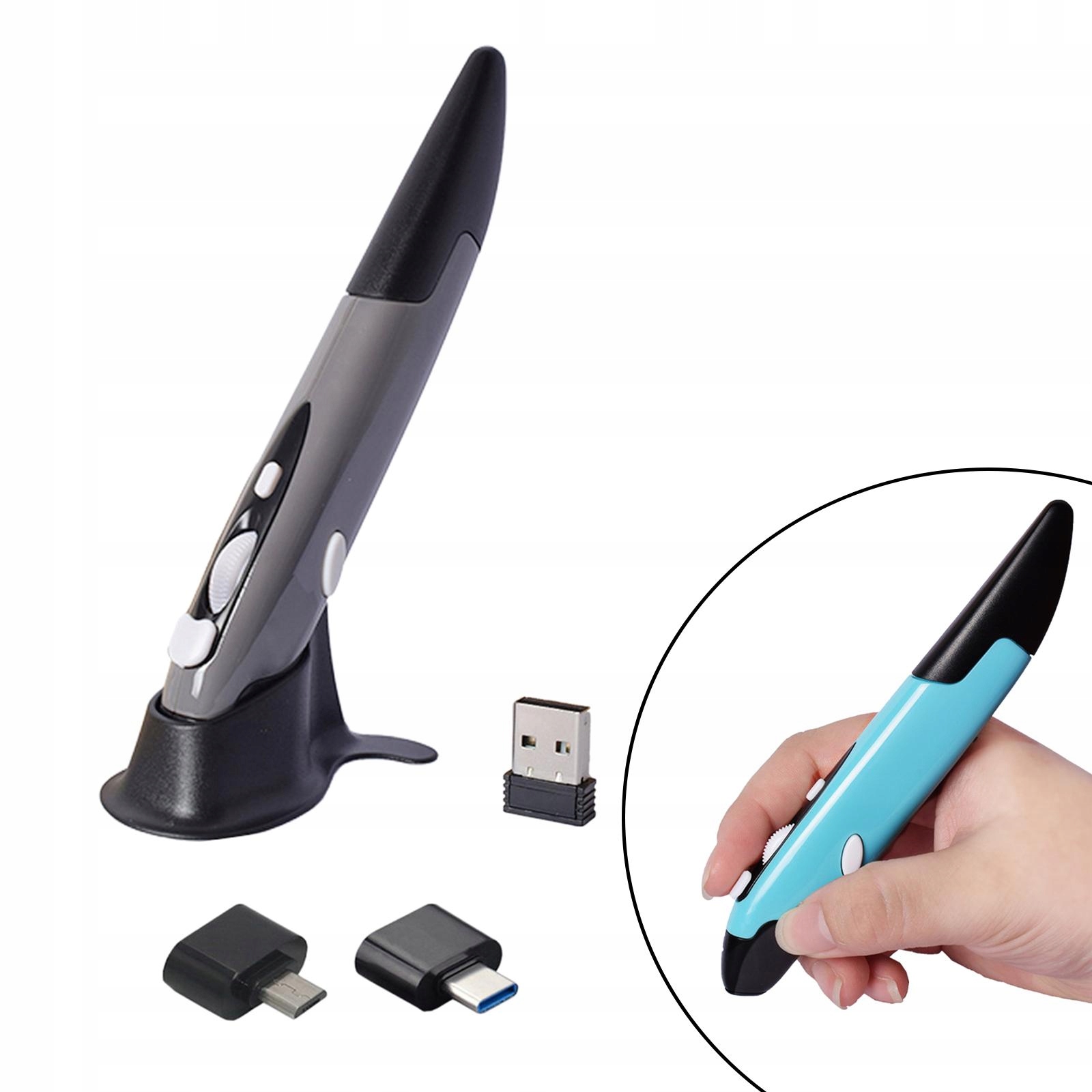 Bezprzewodowa mysz z długopisem 2,4G do notebooka, telefonu, laptopa, szara
