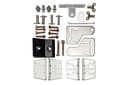 Dedykowane mocowania wraz z śrubami do montażu zapewniają swobodę montażu siłowników. Wiemy, że każda brama jest inna, stąd dzięki tym uchwytom dowolnie skonfigurujemy siłowniki na każdej bramie. Do mocowań dołączone są kluczyki do awaryjnego rozblokowywania w przypadku zaniku prądu, odbój do zatrzymywania skrzydeł bramy oraz tulejki mocujące.