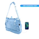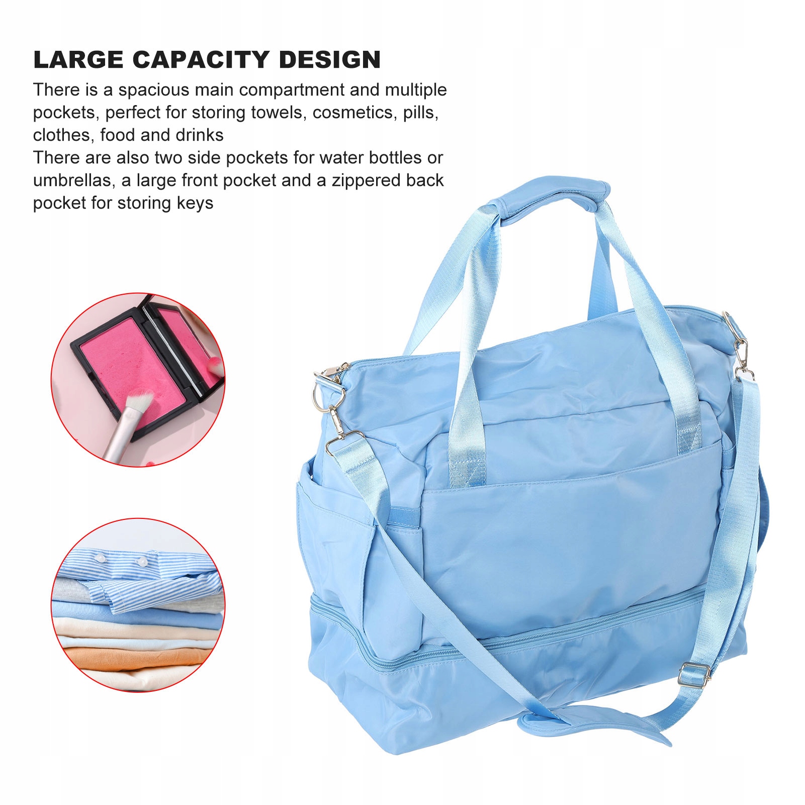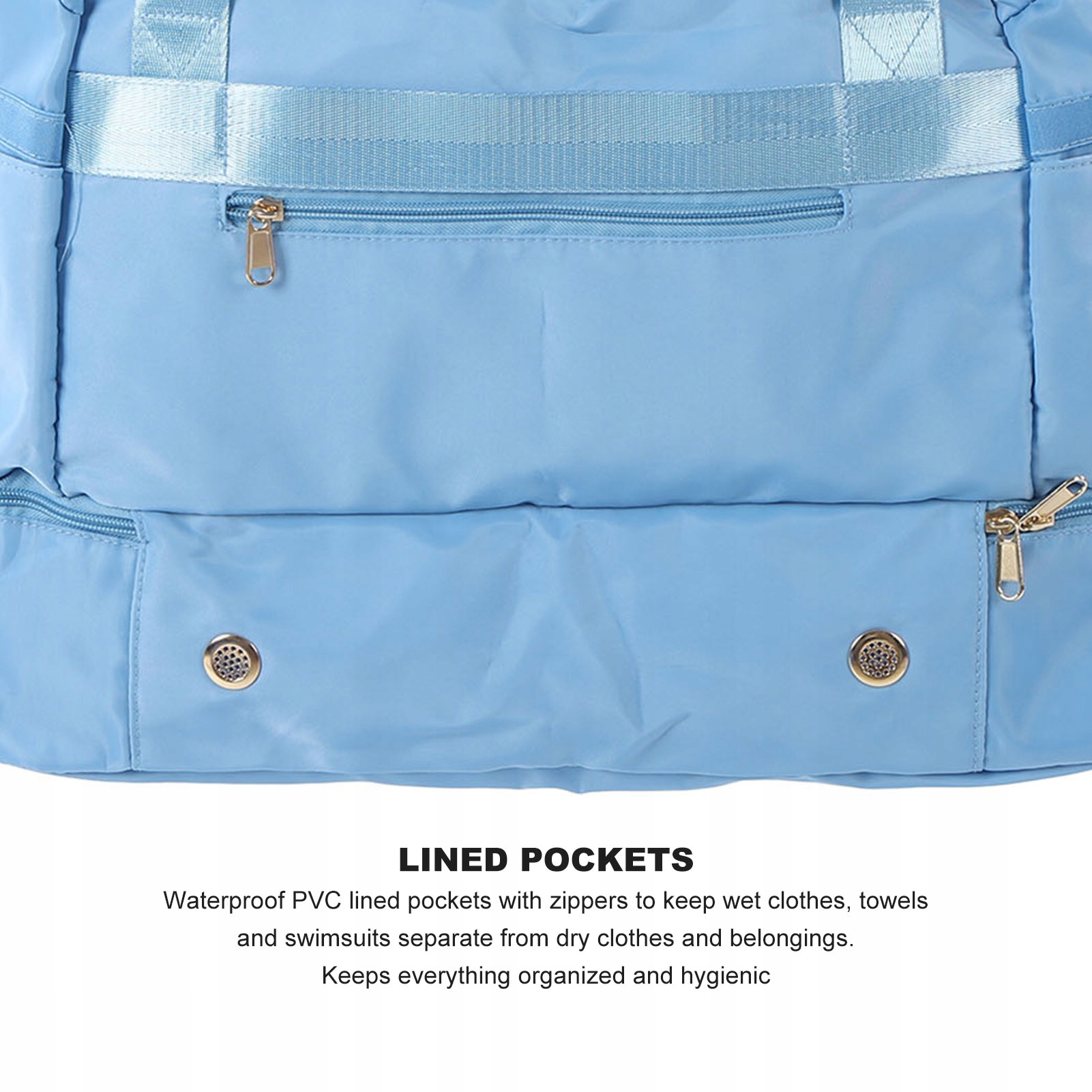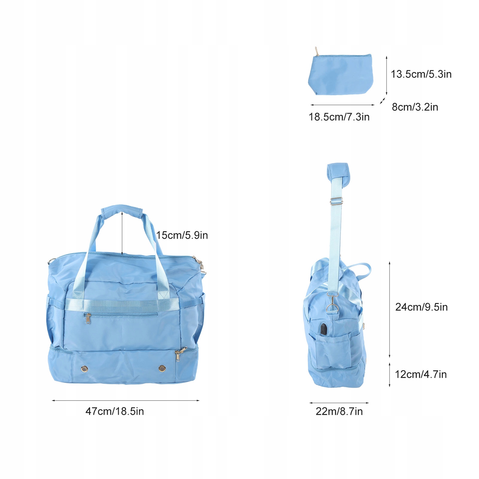 1. DUŻA POJEMNOŚĆ: Damska torba gimnastyczna ma przestronną komorę główną i wiele kieszeni, idealnych do przechowywania ręczników, kosmetyków, tabletek, ubrań, jedzenia i napojów. 2. KIESZENIE BOCZNE: Damska torba sportowa posiada również dwie boczne kieszenie na butelki z wodą lub parasole, dużą przednią kieszeń i tylną kieszeń zapinaną na zamek na klucze. 3. WODOODPORNA TKANINA: Damska sportowa torba podróżna wykonana jest z wytrzymałego, wodoodpornego poliestru, który zapewnia długotrwałą trwałość. Wysokiej jakości zamki błyskawiczne i metalowe klamry dodatkowo zapewniają trwałość i bezpieczeństwo Twoich przedmiotów. 4. KIESZEŃ Z PODŚWIETLENIEM: Damska torba sportowa jest wyposażona w zapinaną na zamek wodoodporną kieszeń wyłożoną PCV, która pozwala oddzielić mokre ubrania, ręczniki i kostiumy kąpielowe od suchych ubrań i rzeczy osobistych, zapewniając porządek i higienę. 5. PORT ŁADOWANIA USB: Damska torba treningowa jest wyposażona w port ładowania USB, który umożliwia wygodne ładowanie urządzeń elektronicznych w podróży, zapewniając łączność!