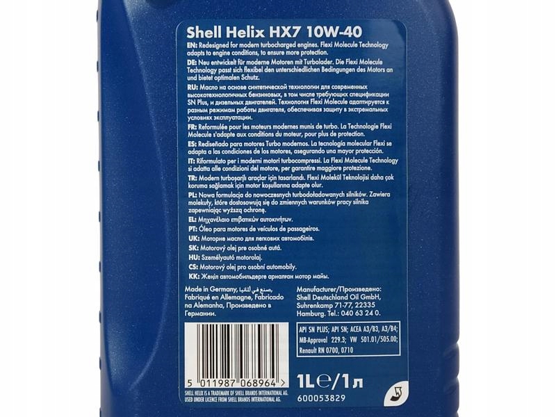 Rodzina samochodowych olejów silnikowych Shell Helix należy do najlepiej znanych produktów koncernu. Wszystkie oleje Shell Helix zawierają dodatki czyszczące, które pozwalają skutecznie usuwać nagromadzone osady. Zarówno badania przeprowadzone przez sam koncern, jak i testy wykonywane w niezależnych ośrodkach wykazały, że stosowanie oleju tej marki poprawia pracę i żywotność silnika.