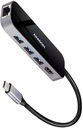 Wyjście USB: 3x SuperSpeed USB port, złącze USB-A female. 1x USB typu C Power Delivery złącze (tylko ładowanie), USB-C female. Wsparcie szybkości transmisji 5.000 / 480 / 12 / 1.5 Mb/s (SuperSpeed / High / Full / Low speed). Przepuszczalność ogólna / szybkość transmisji obudowy jest dana wykorzystanym interfejsem USB 3.2 Gen 1 (teoret. aż 5 Gbit/s). Hub USB-C może permanentnie obsługiwać kilka dysków zewnętrznych. Ładowanie urządzeń mobilnych (w tym iPada) prądem do 1.5A jest możliwe w każdym z portów huba. Całkowity prąd ładowania (podzielony na wszystkie porty) sięga nawet 2.1A przy 5V (w zależności od możliwości portu USB komputera).