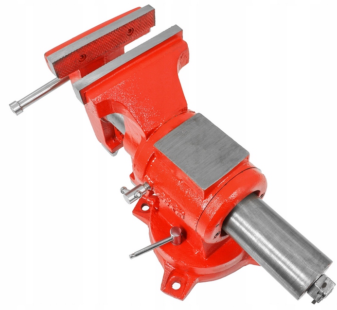 Podstawa obrotowa w zakresie 360°, pozwala na zmianę kąta położenia w płaszczyźnie poziomej. Imadło połączone z kowadłem tworzy solidną zwartą konstrukcje.