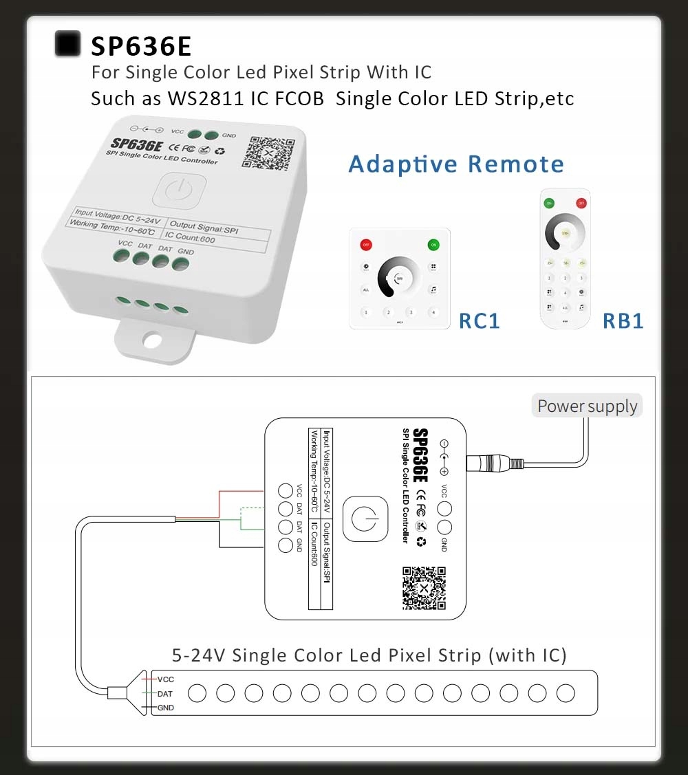 Na tej aukcji kupisz Kontroler do taśmy LED CYFROWEJ SP636E - podana cena dotyczy jednej sztuki!