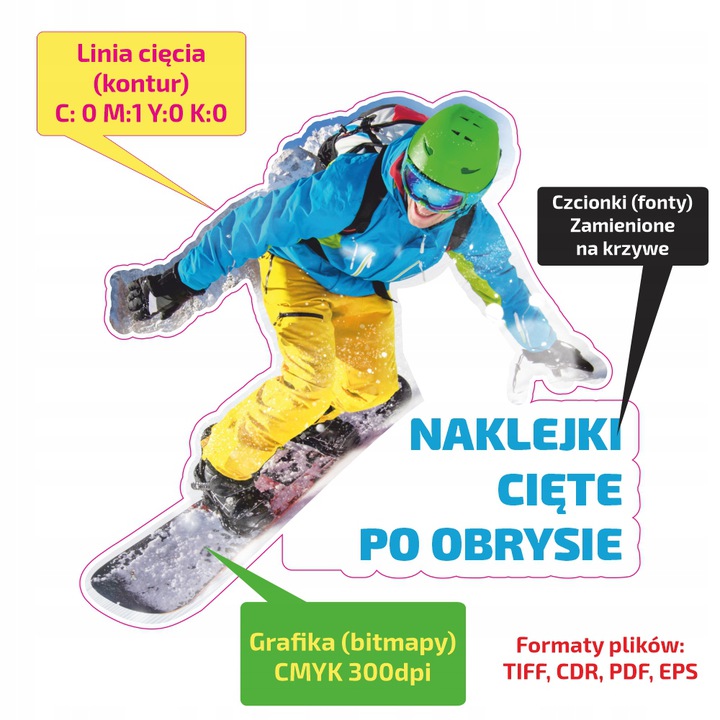 Linie cięcia zapisane jako: CDR, PDF, EPS (dla linii cięcia proszę nadać kolor C: 0 M:1 Y:0 K:0)