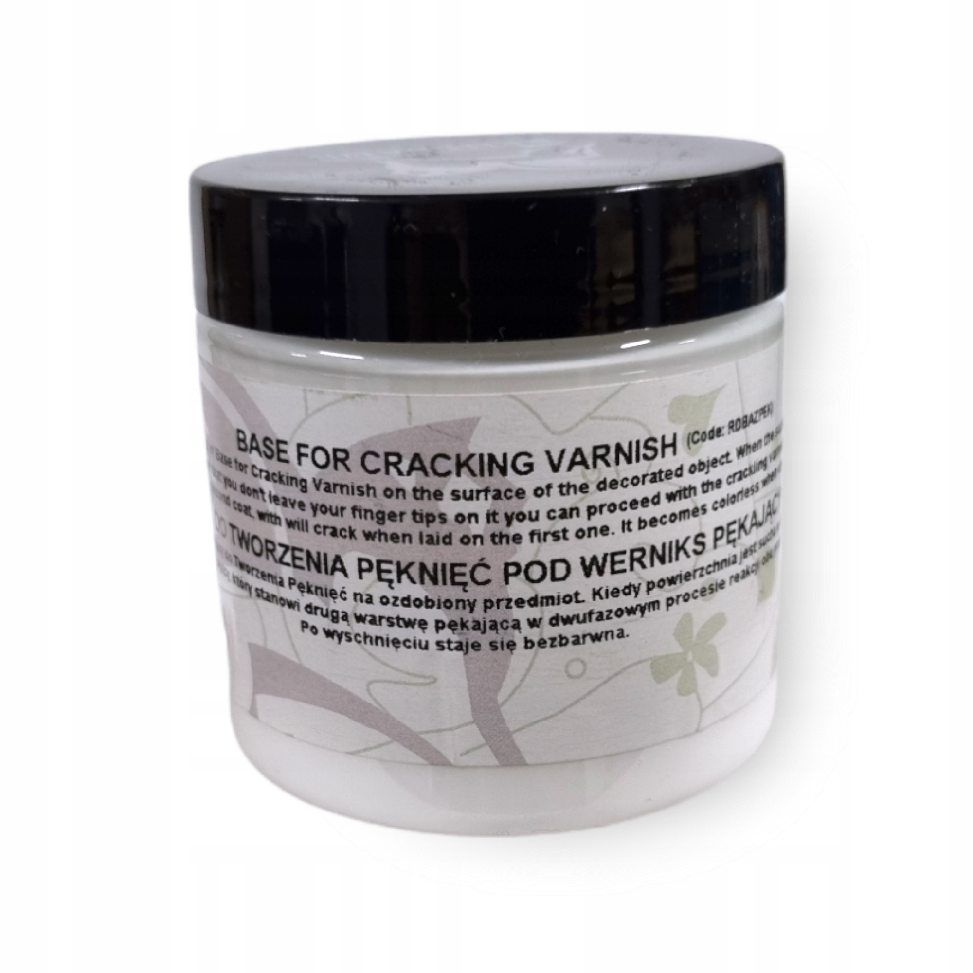 Baza pozwala uzyskać siatkę drobnych pęknięć, które są większe niż przy zastosowaniu jako podkład werniksu z połyskiem.