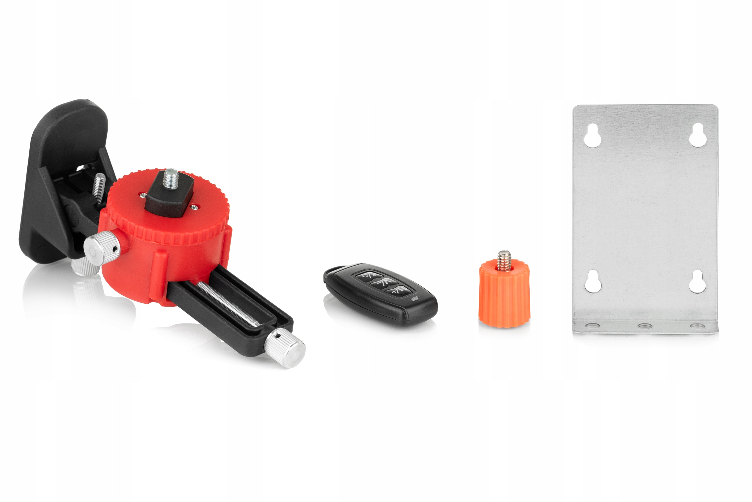 Pilot zdalnego sterowania pozwala na obsługę lasera z odległości nawet 10 m. Za jego pomocą możemy włączać i wyłączać poszczególne wiązki oraz zmieniać jasność lasera.