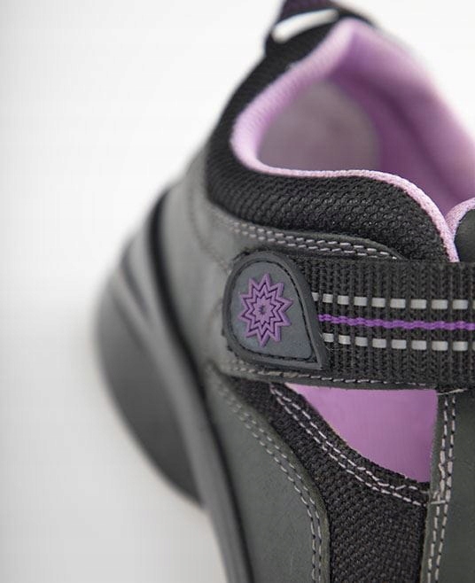 SANDAŁY FLORET SAN S1/ ARDON. Damskie sandały ochronne opracowane specjalnie na węższe damskie stopy. Bardzo uniwersalne sandały mogą być stosowane do prac lekkich i ciężkich. Kolor: czarny + fiolet. Rozmiar: 36, 39, 40, 41, 42. Waga: +/- 542 g. Cholewka: Nubuk- skóra bydlęca grubość 1,8 - mm/tekstylia. Podszewka: laminowany oddychający materiał DRYLEX. Konstrukcja: model na węższą damską stopę, niska cholewka, miękki kołnierz i język, wstawki odblaskowe , dopasowanie za pomocą rzepa, wymienna wkładka BASIC, stalowy podnosek AHG odporny na uderzenia, stabilna antypoślizgowa podeszwa. Zalety podeszwy: właściwości antystatyczne, wtrysk dwuskładnikowy, odporność na oleje, antypoślizgowość, amortyzacja w części piętowej. Zastosowanie: magazyn, logistyka, produkcja, prace remontowe.
