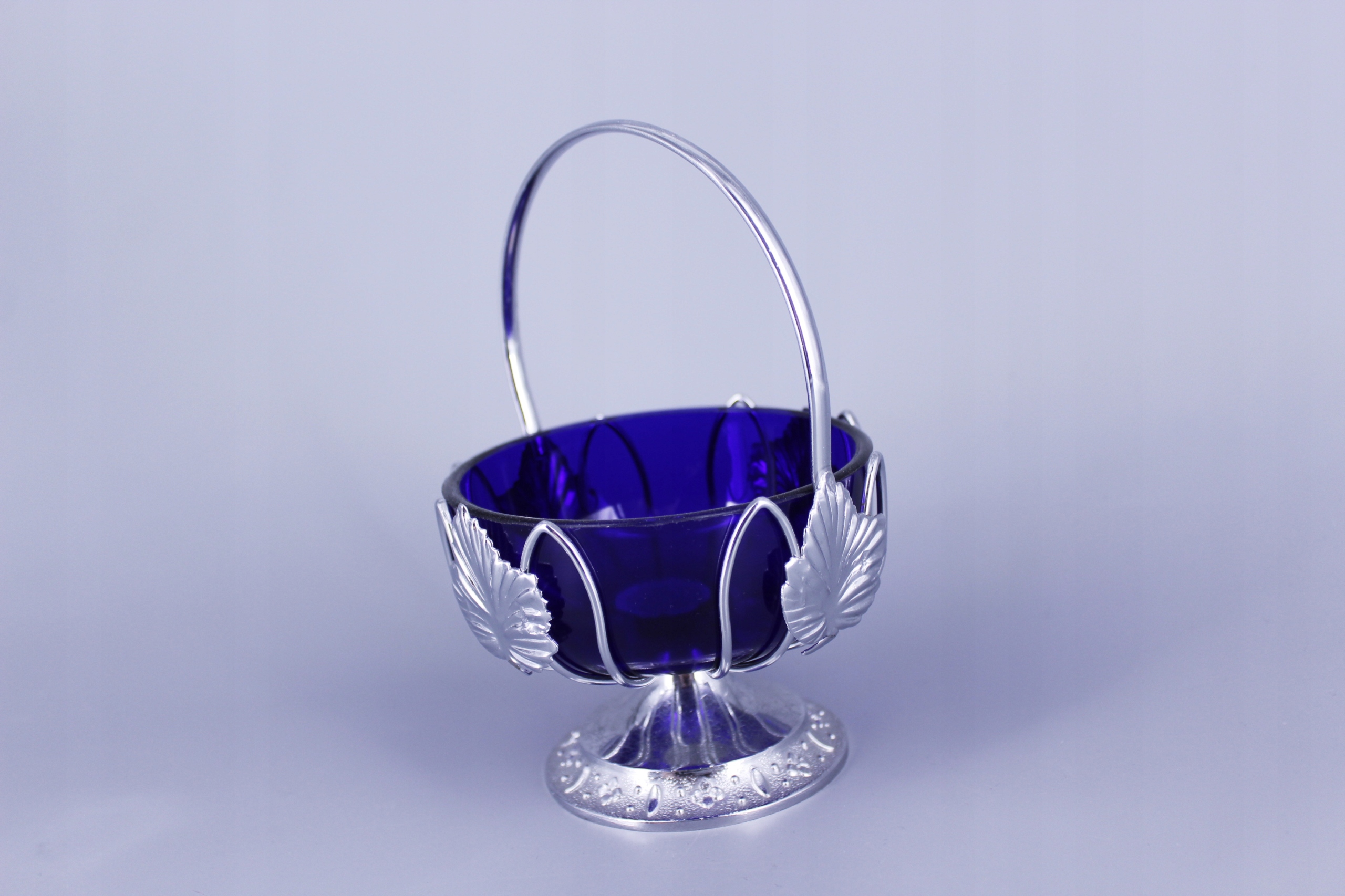 Внутри находится стеклянный контейнер для сахара цвета кобальта.