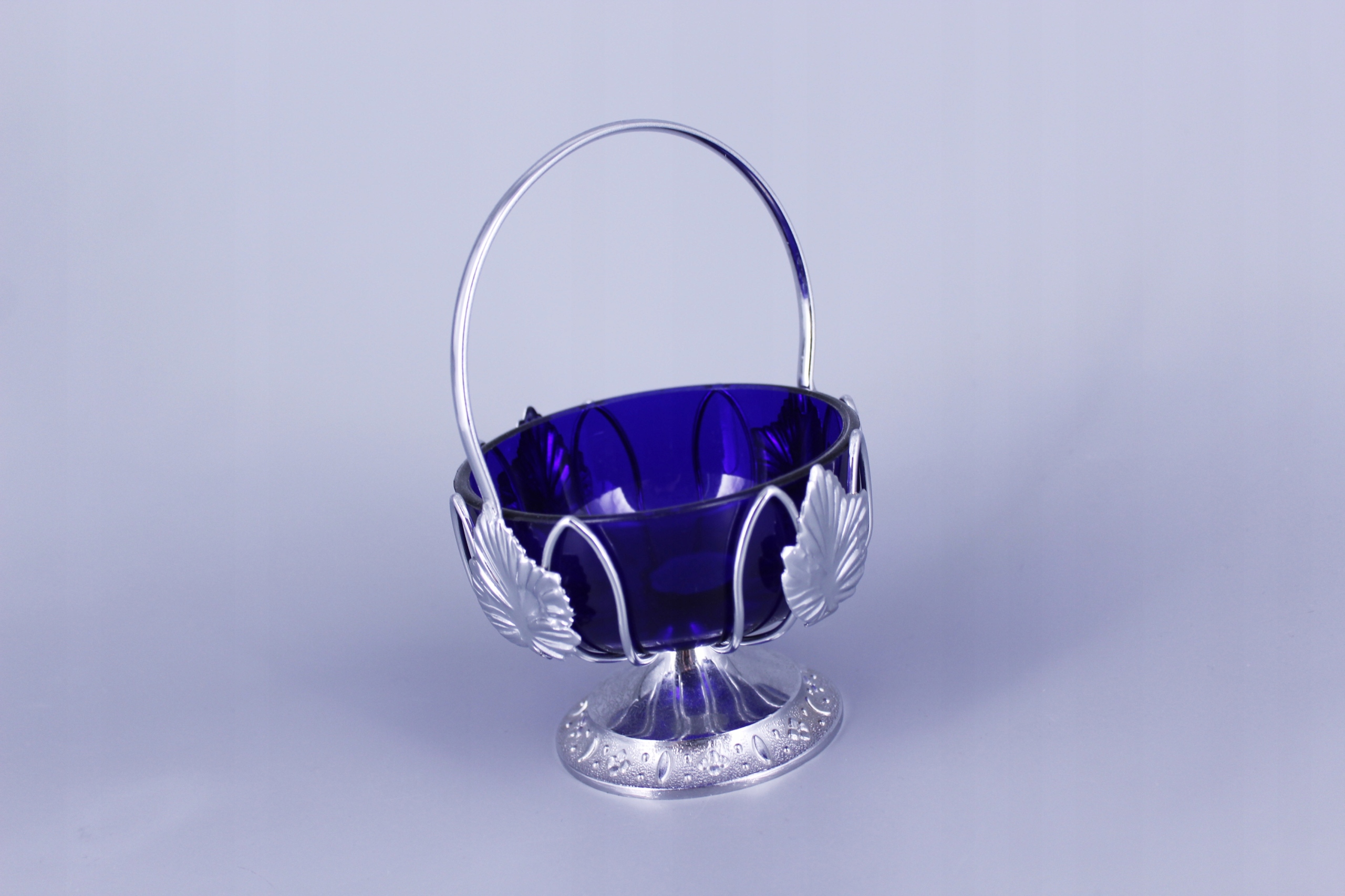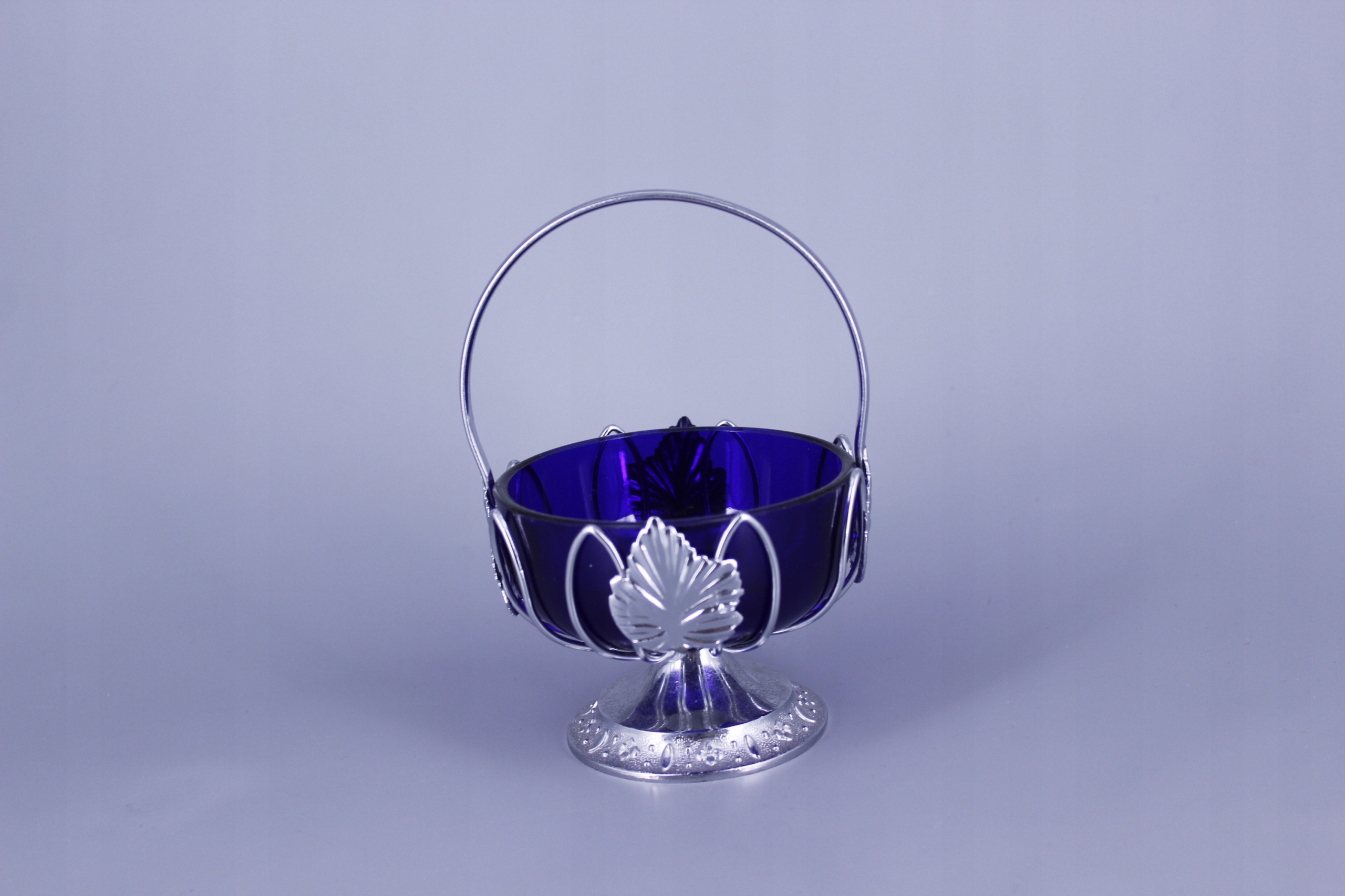 Внутри находится стеклянный контейнер для сахара цвета кобальта.