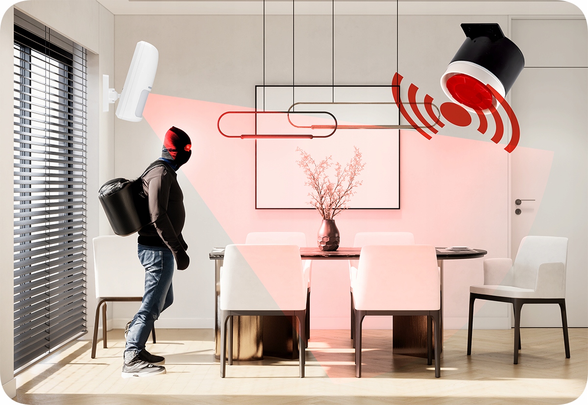 ⚠️Akcesoria (bezprzewodowo łączą się z alarmem) pracują na zasilaniu bateryjnym, baterie dołączone są do zestawu.