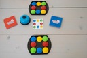 2. Gra rozpoczyna się od odkrycia pierwszej karty, po czym każdy gracz musi przesunąć pionki na swojej planszy w taki sposób, aby dokładnie odwzorować układ pokazany na odkrytej karcie.