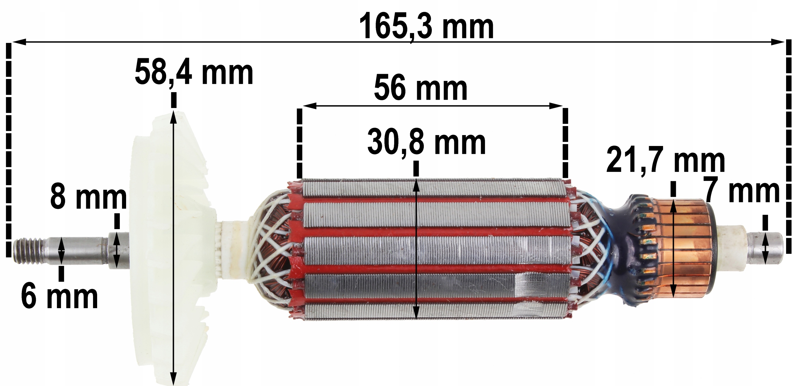 Wirnik do szlifierki kątowej BOSCH w komplecie z łożyskami oraz szczotkami.