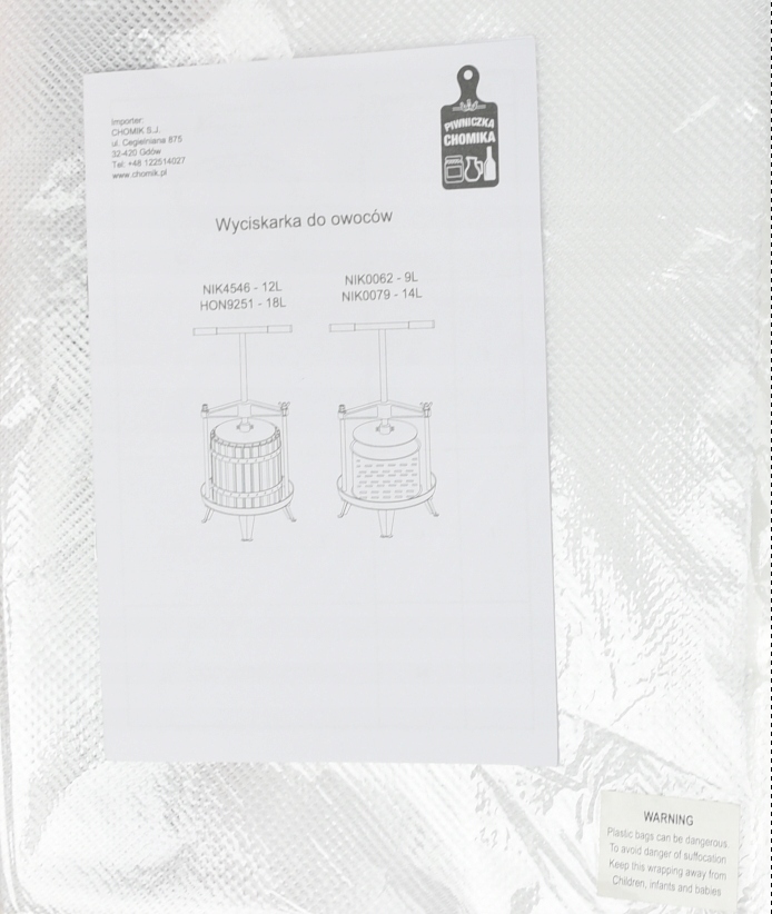Prasa jest dostarczona rozłożona - należy ją skręcić samodzielnie. Potrzeba na to ok 15-20 minut.