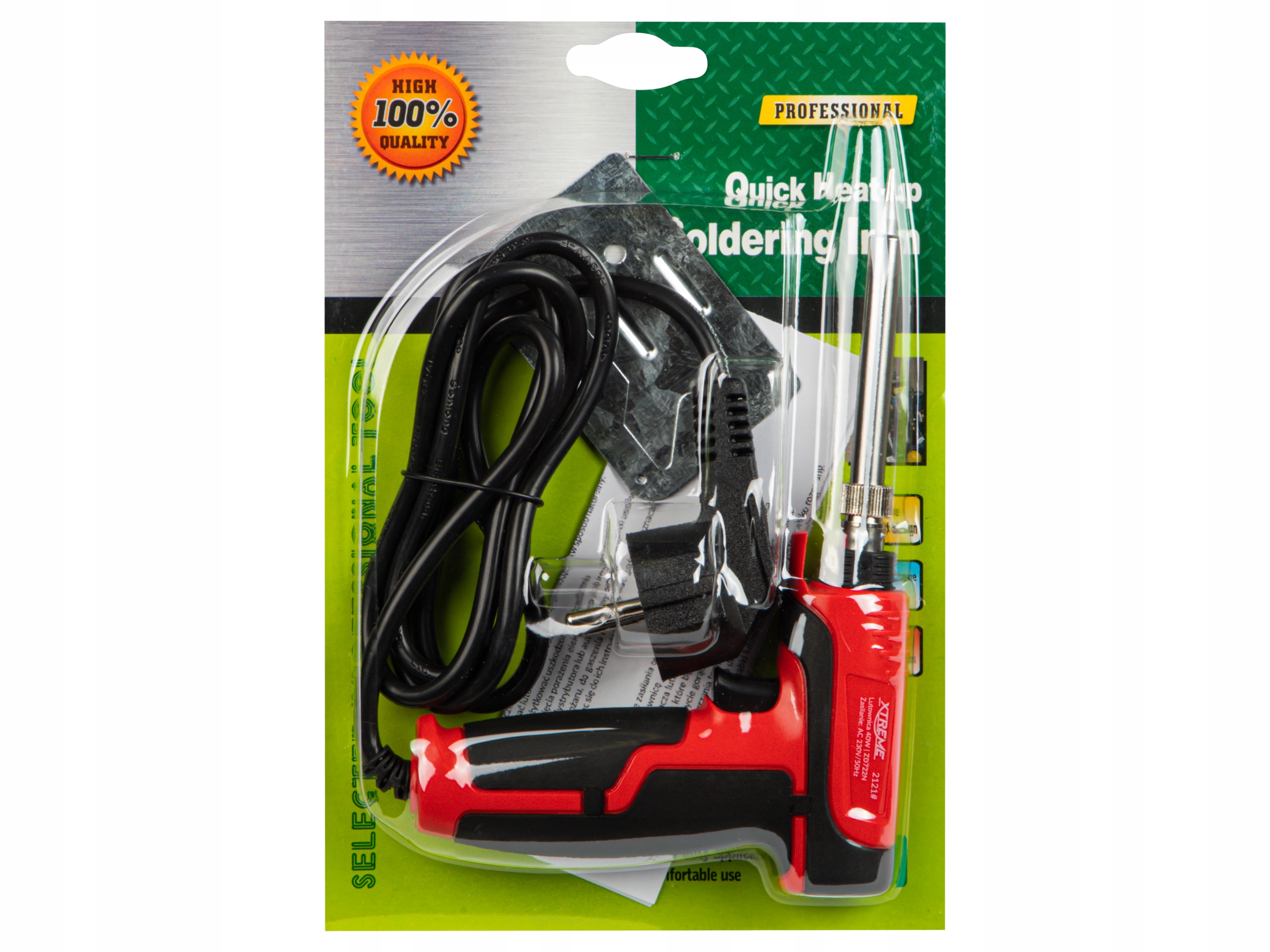 Lutownica została wykonana z materiałów wysokiej jakości zapewniających wytrzymałość i trwałość podczas użytkowania. Rękojeść została pokryta gumową osłoną dla bezpieczeństwa i wygodnej pracy. Wykonanie urządzenia w formie pistoletu powinno usprawnić pewne lutowanie.