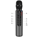 Mikrofon karaoke M6 posiada trzy przełączniki oraz 7 przycisków, dzięki którym w wygodny sposób można sterować odtwarzaną muzyką, echem czy głośnością mikrofonu.