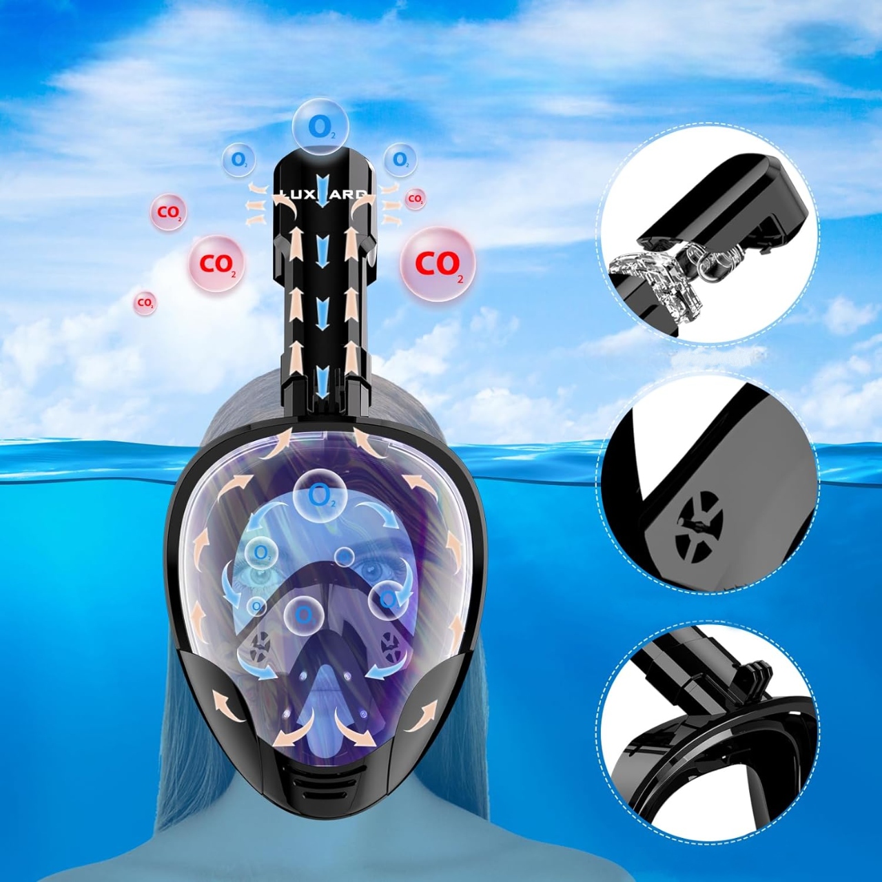 Pełnotwarzowa maska do nurkowania z innowacyjnym systemem oddychania pod wodą stanowi bezpieczne rozwiązanie zarówno dla początkujących, jak i zaawansowanych pływaków. Dzięki zaawansowanej technologii oddychania, umożliwia komfortową naukę nurkowania oraz efektywną eksplorację podwodnego świata.