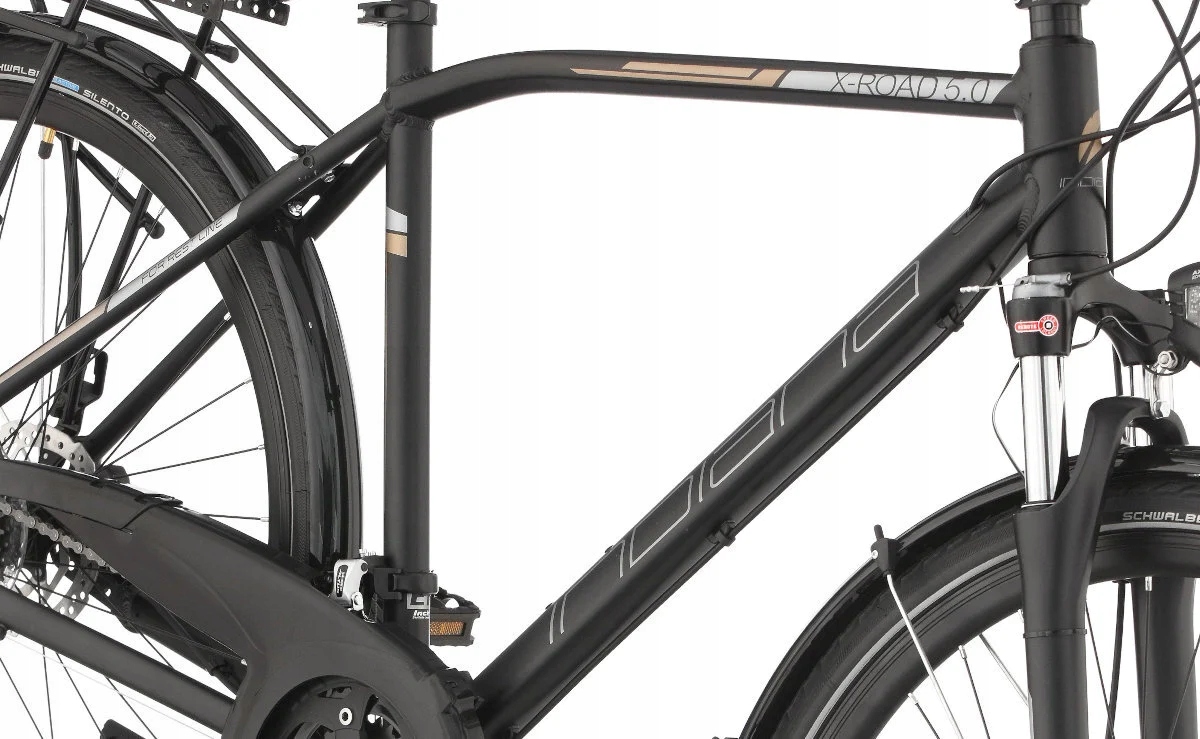 Odpowiednio dobrany rozmiar ramy jest jednym z najważniejszych czynników, który wpływa na komfort jazdy i odpowiednią kontrolę nad rowerem. W rowerze trekkingowym INDIANA X-Road 5.0 zastosowano aluminiową ramę. Wykonane z tego materiału ramy wyróżniają się przede wszystkim lekkością, ale i odpornością na korozję i uszkodzenia mechaniczne.