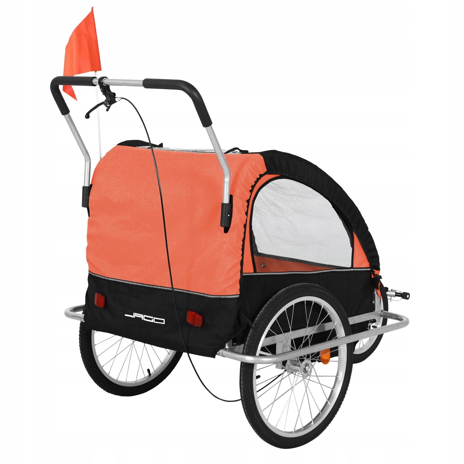 BEZPIECZEŃSTWO: Odpowiednia dla dzieci w wieku od 12 miesiąca życia, posiada paski odblaskowe oraz światła odblaskowe, 5-punktowy pas bezpieczeństwa, hamulec przedniego koła i flagę sygnalizacyjną dla jeszcze większego bezpieczeństwa
