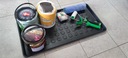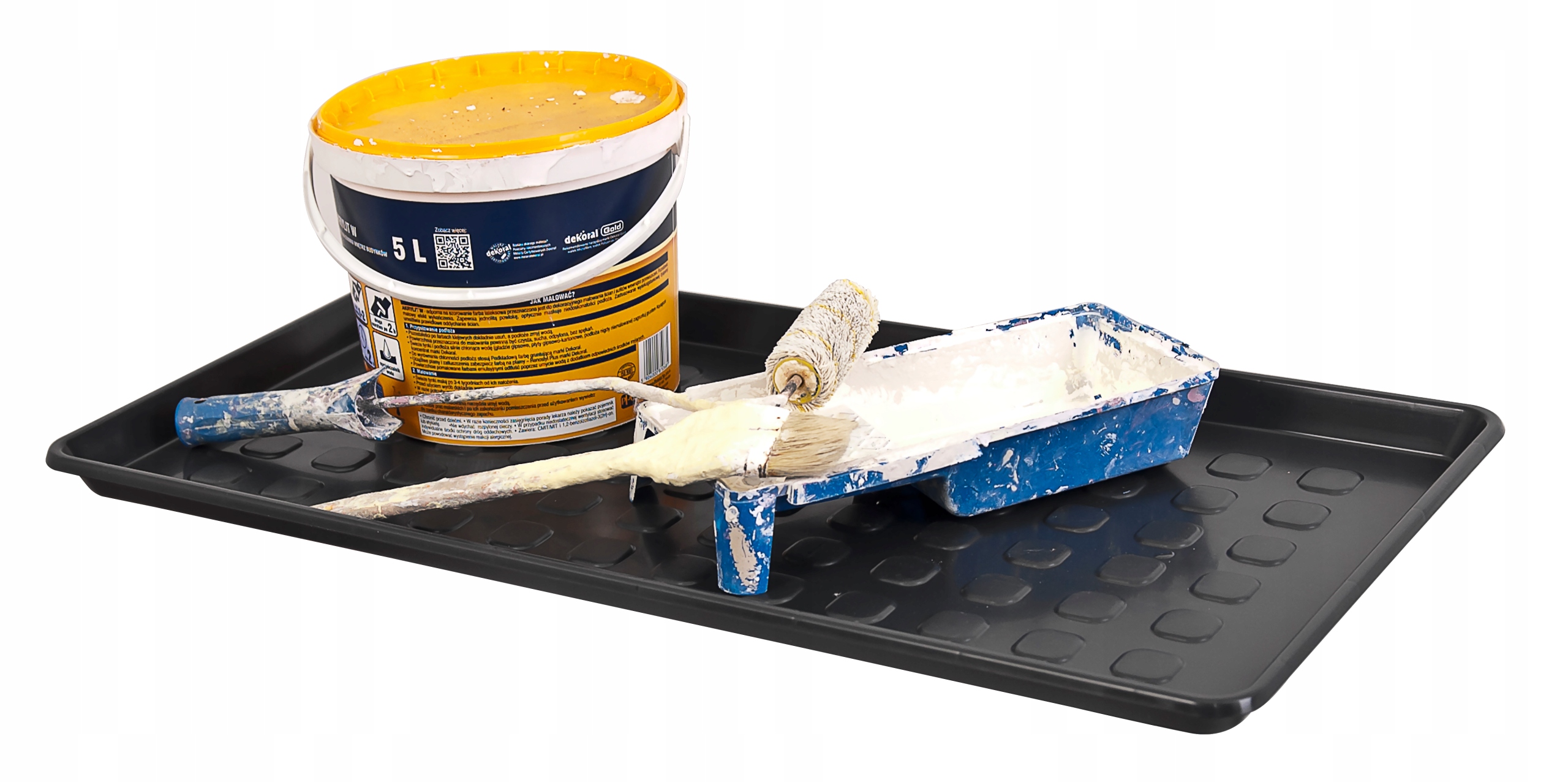 Tackę można położyć w dowolnym miejscu gdzie pracujesz: na stole, na blacie lub na krzesełku, nie przepuszcza wilgoci i zajmuje niewiele miejsca. Dodatkowo zbiera nadmiar wody dzięki 3 cm rantowi podczas pracy woda nie rozlewa się na zewnątrz.